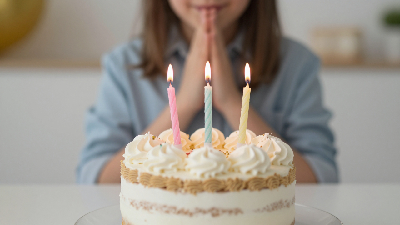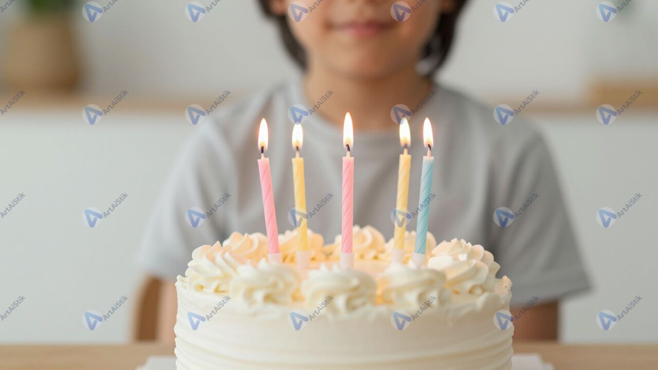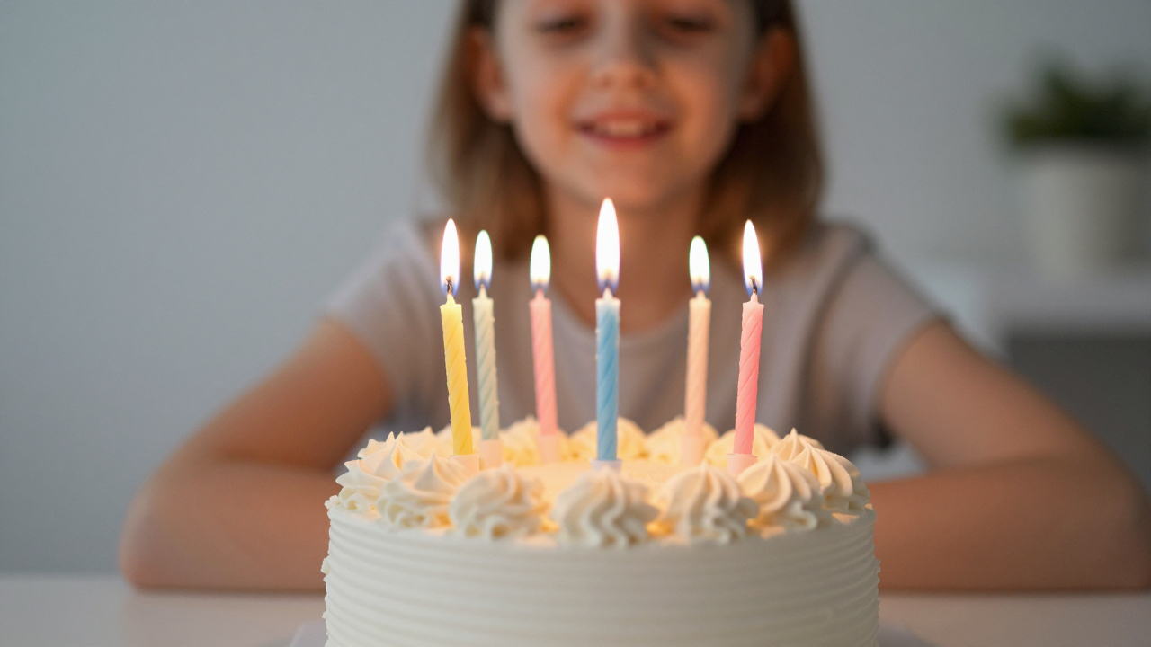 День рождения ребёнка, торт со свечами.