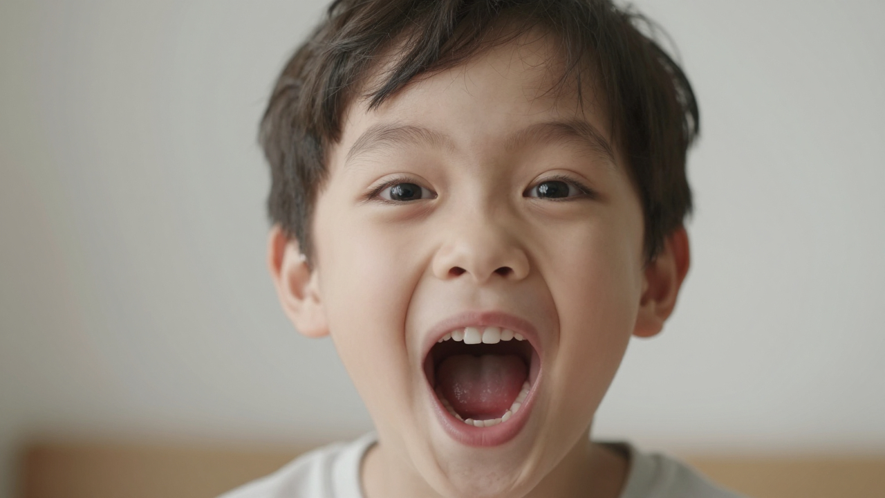Ребёнок с широко открытым ртом и глазами, сюрприз.