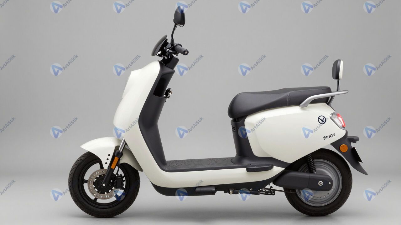 Городской электроскутер с логотипом аренды на корпусе.