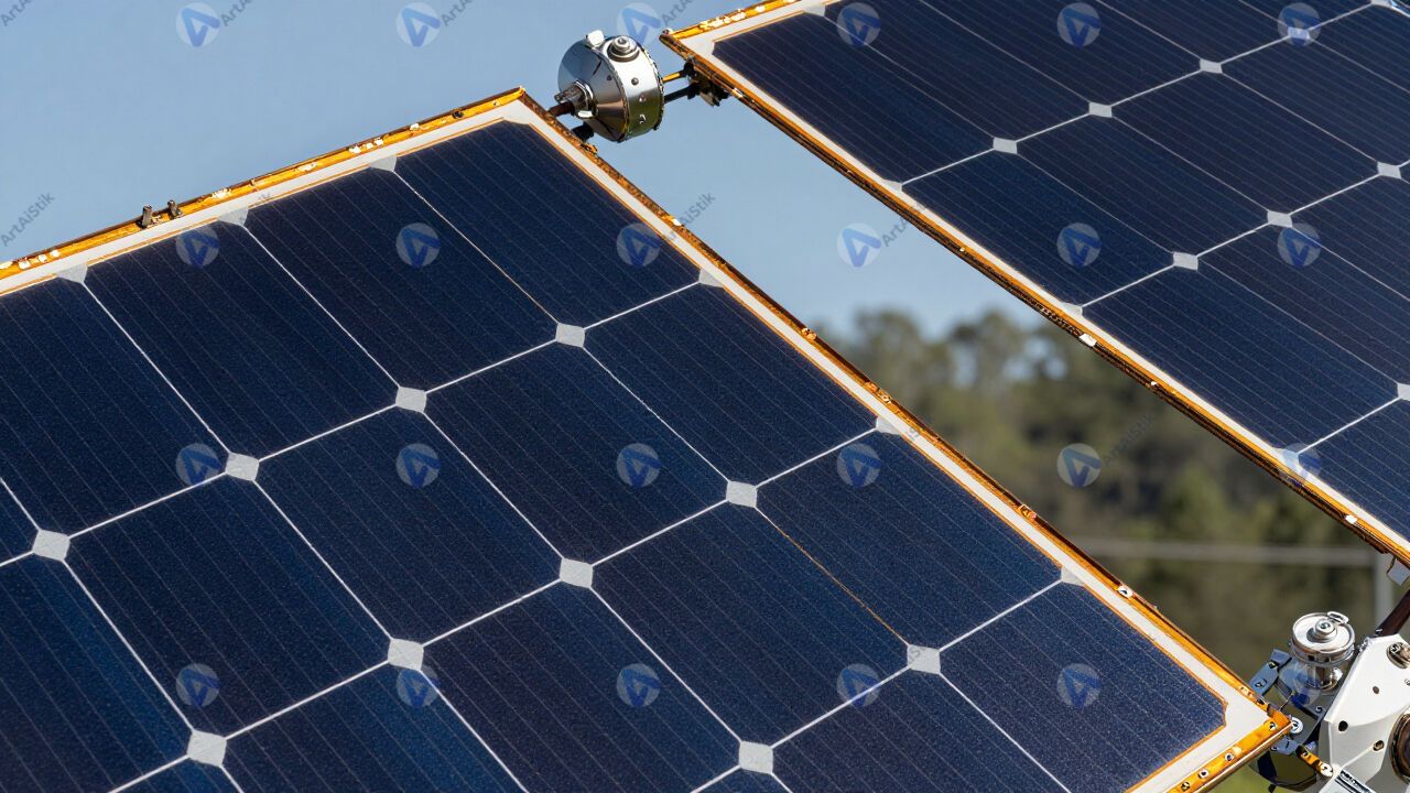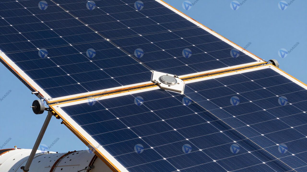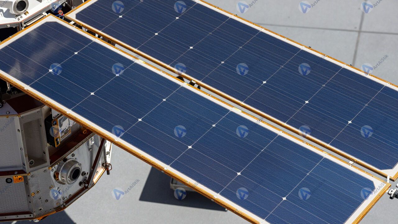 Деталь солнечной панели космического аппарата крупным планом.