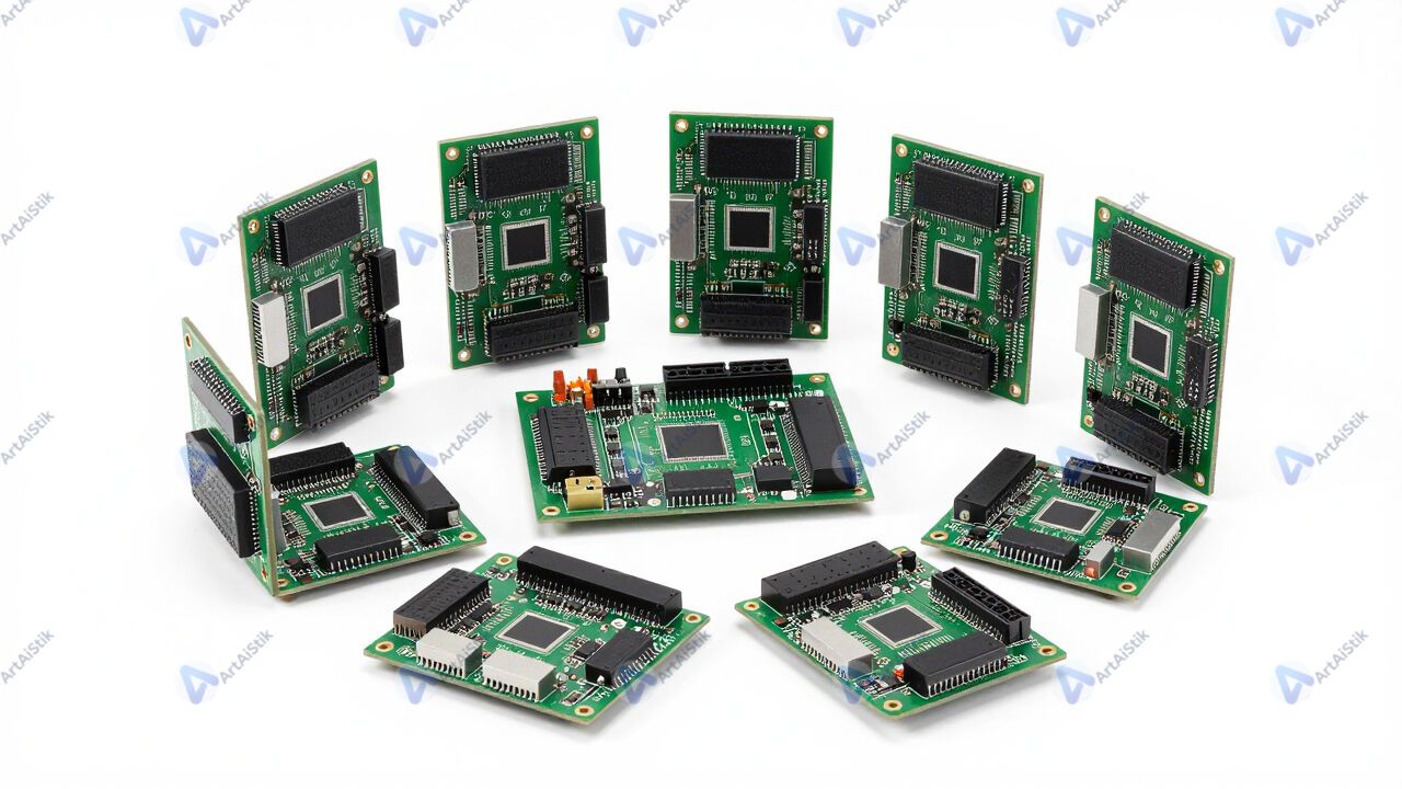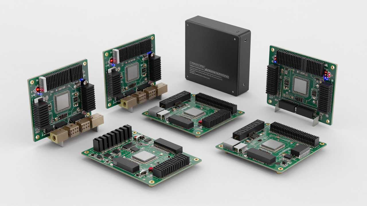 Кластер одноплатных компьютеров, светодиоды мигают на платах.