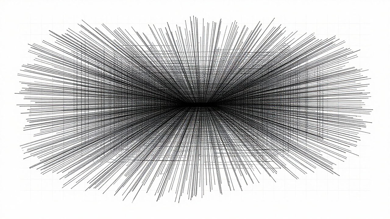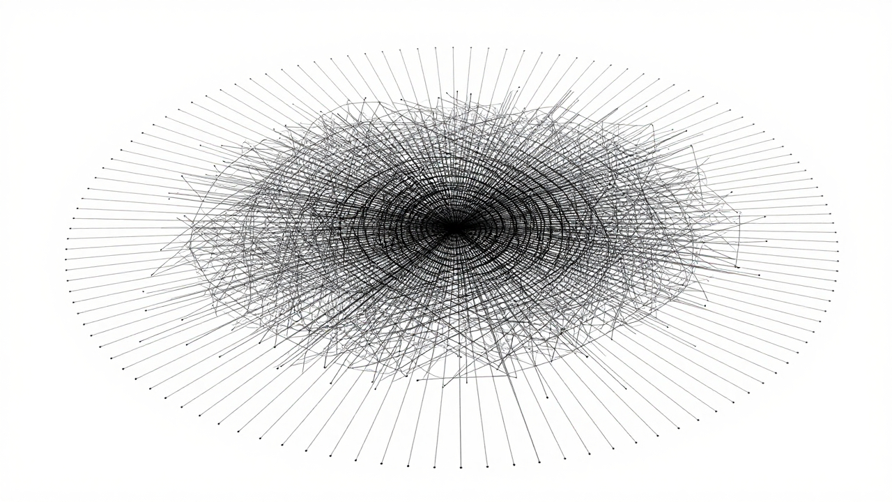 Сетка точек, соединённых линиями в случайных направлениях.