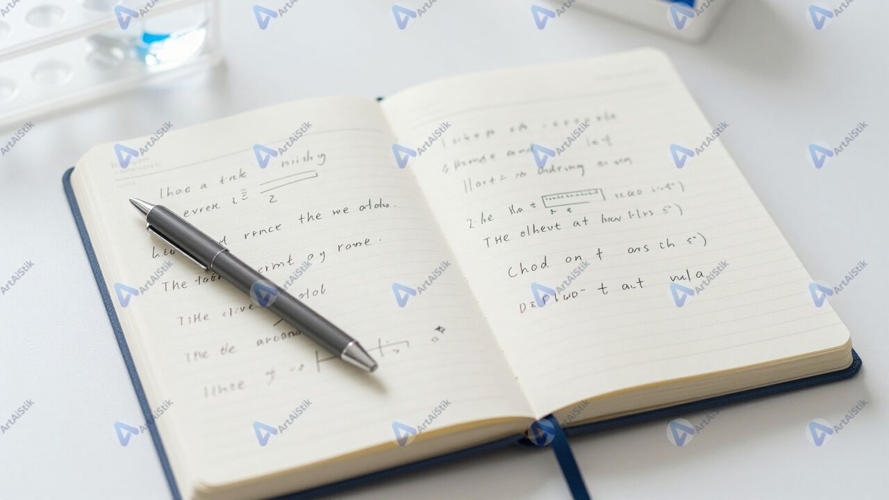 Лабораторный журнал с рукописными записями и формулами.