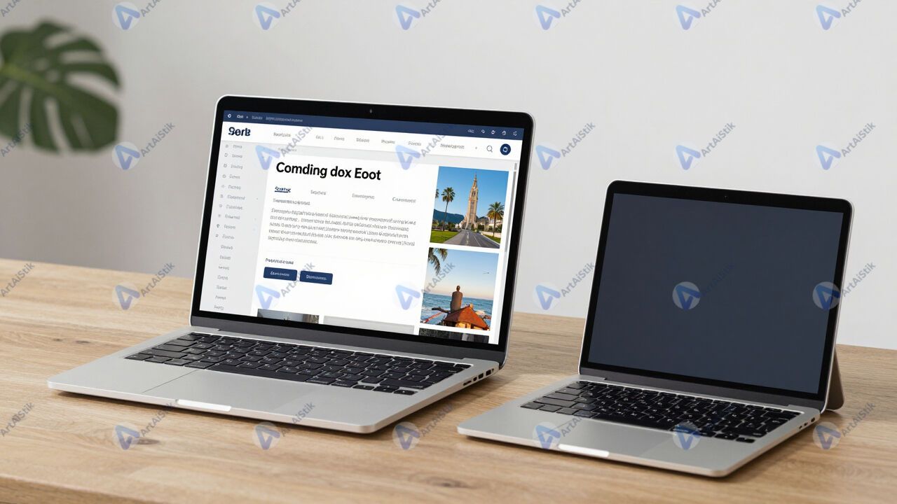 Ноутбук и планшет рядом, синхронизированная презентация.