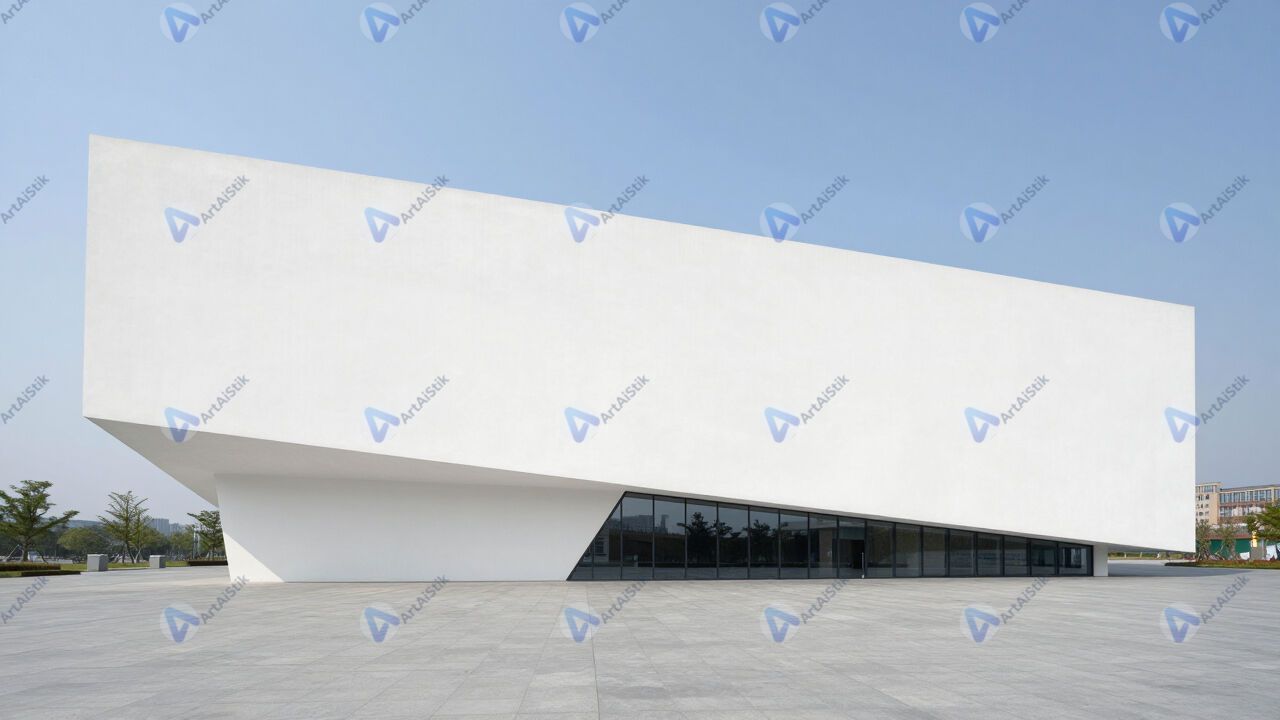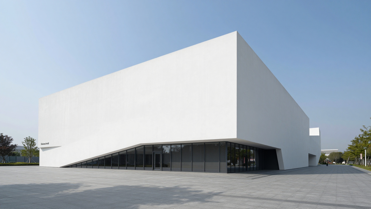 Современный музей с необычной формой, белый.