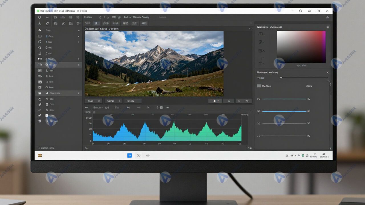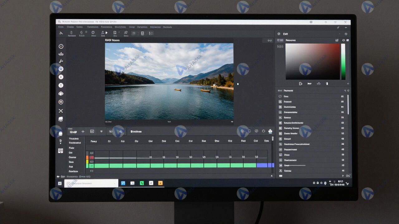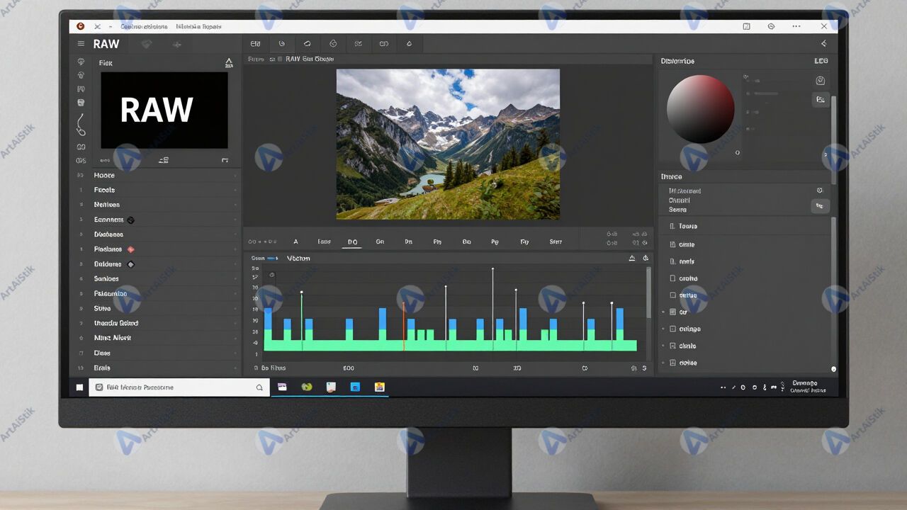Монитор с открытым RAW‑файлом и ползунками редактирования.