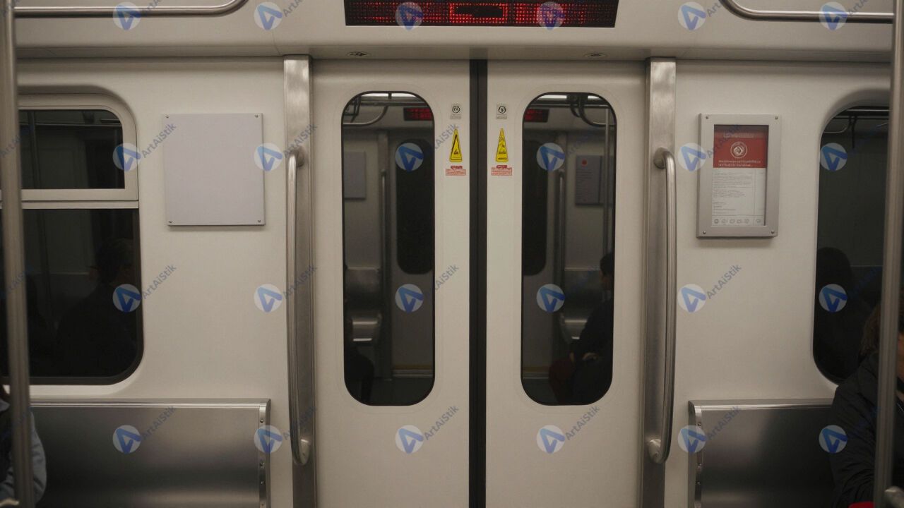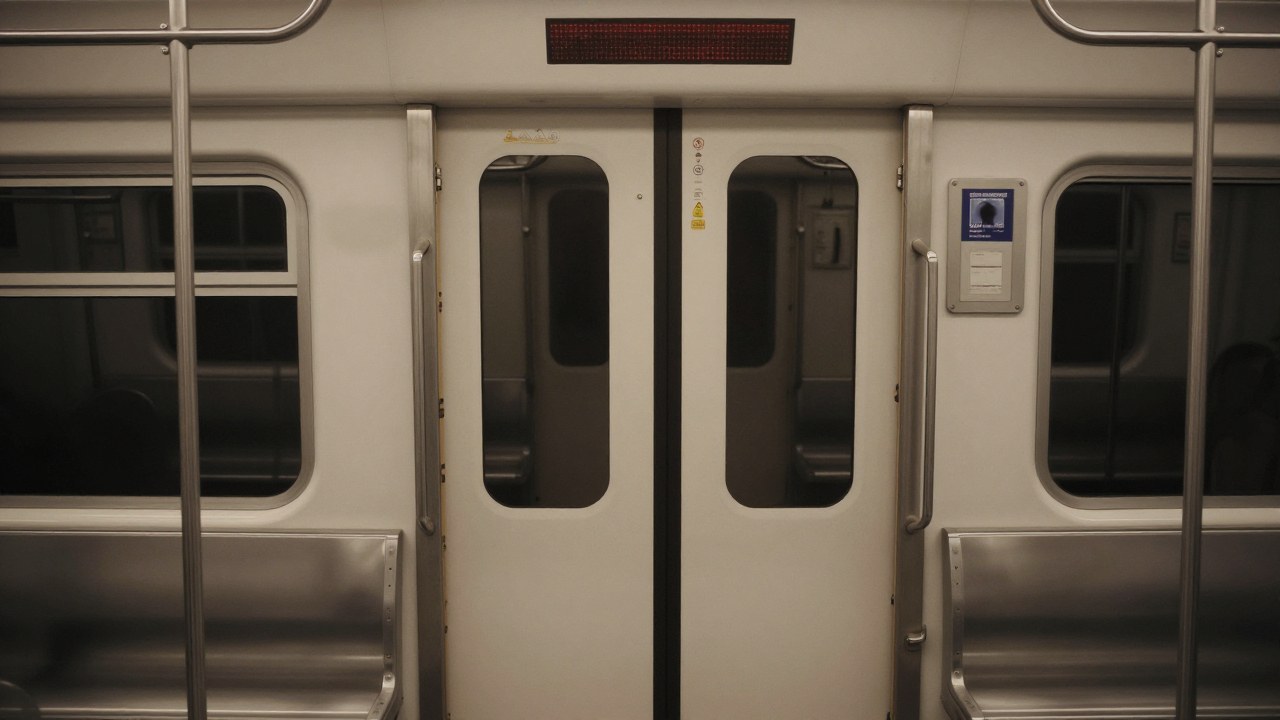 Ночной поезд метро, пустой вагон и мягкий свет.
