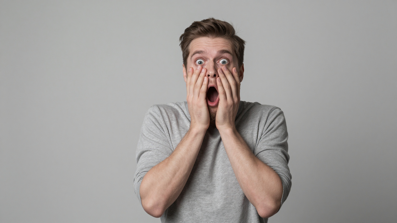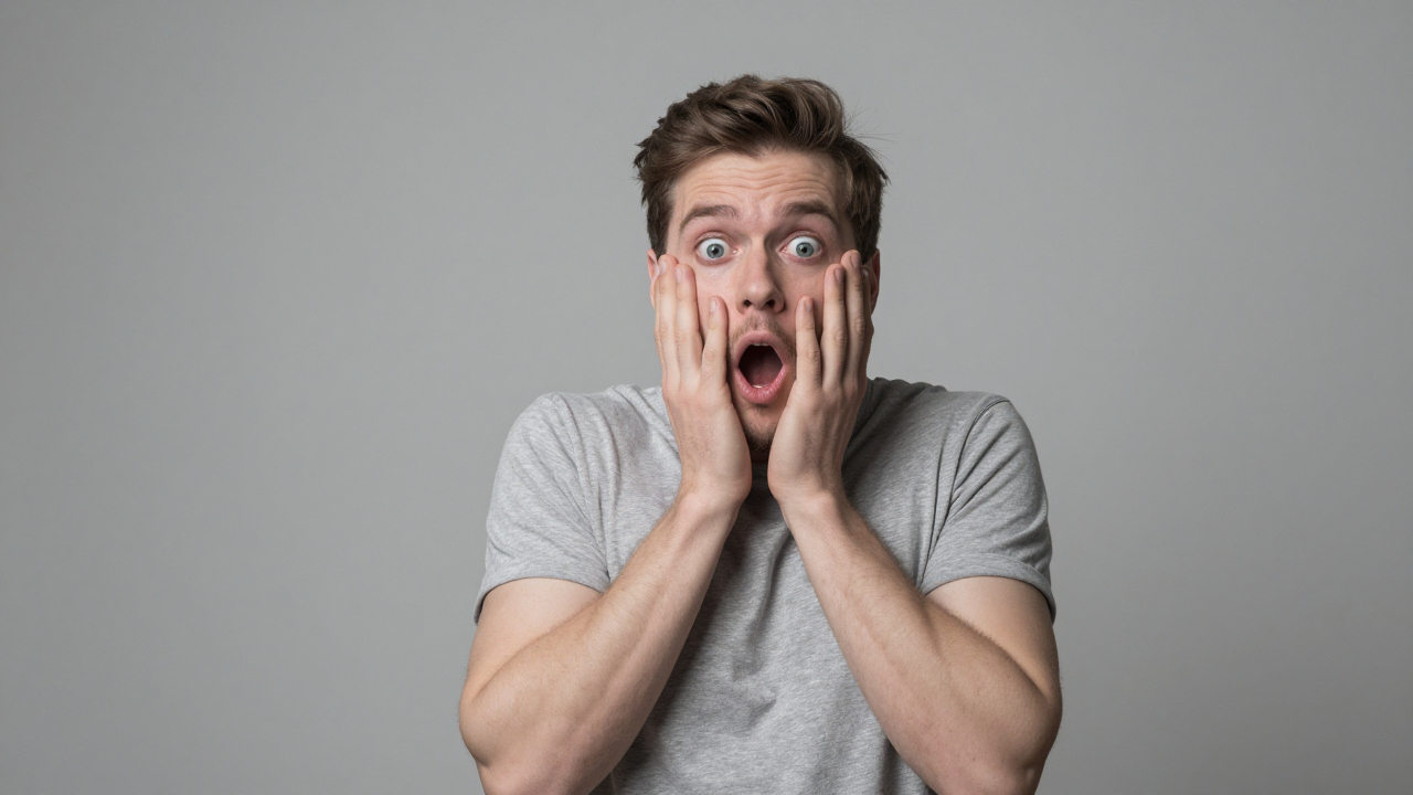 Розыгрыш, человек в шоке, удивление.