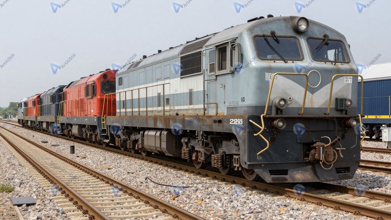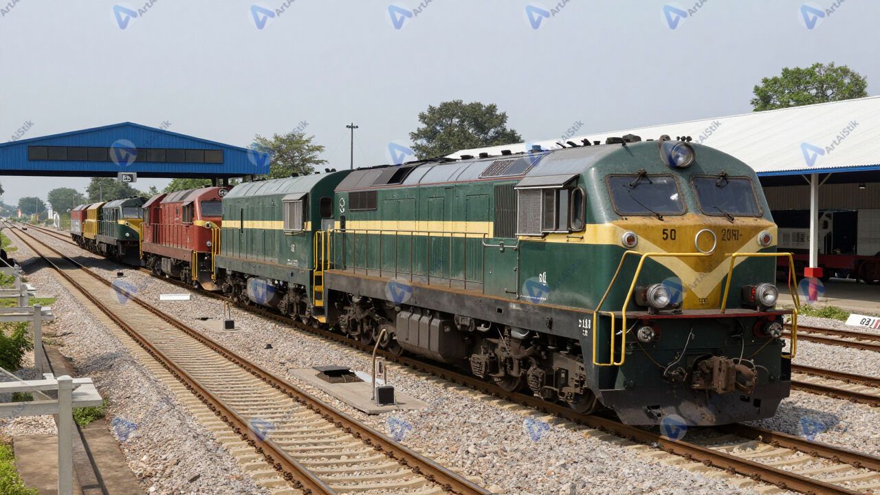 Железнодорожное депо с локомотивами на ремонтных путях.