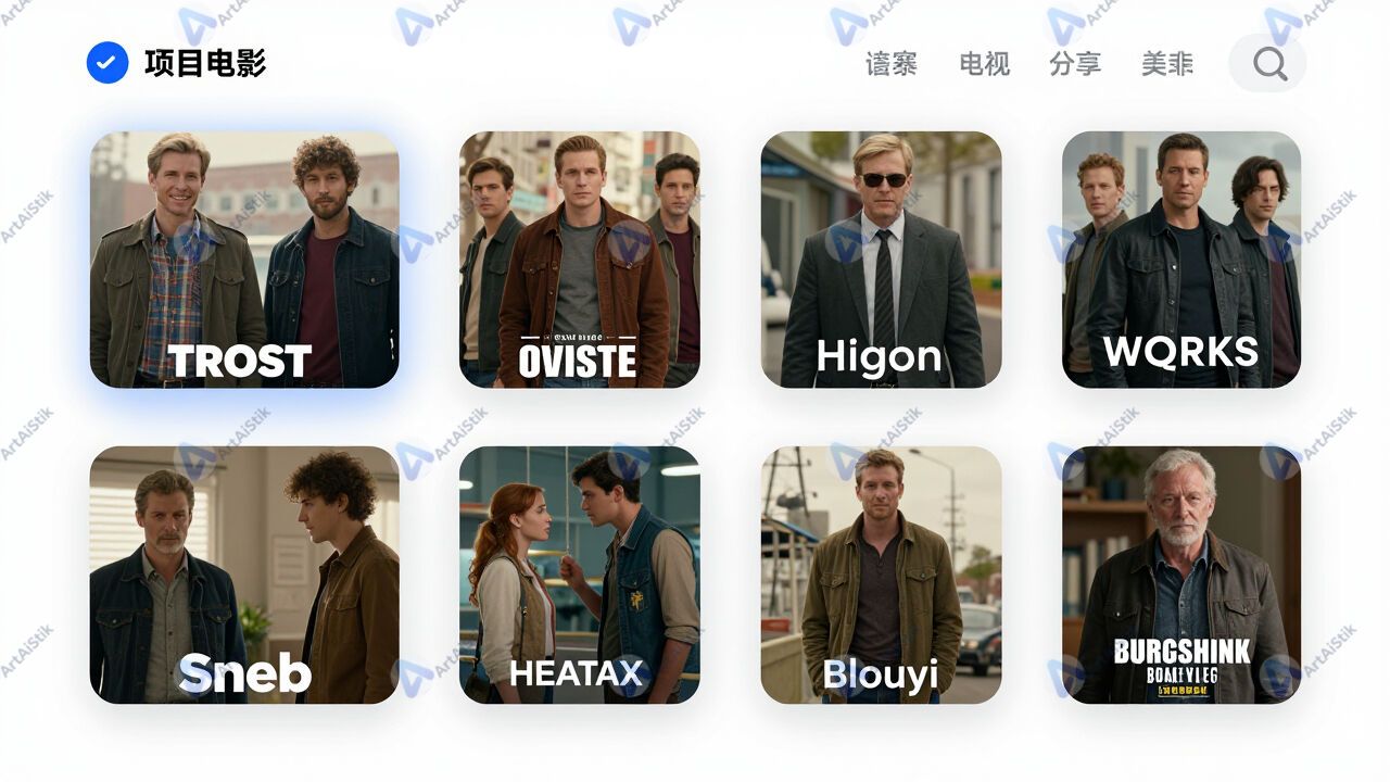 Интерфейс рекомендательной системы с карточками фильмов и товаров.