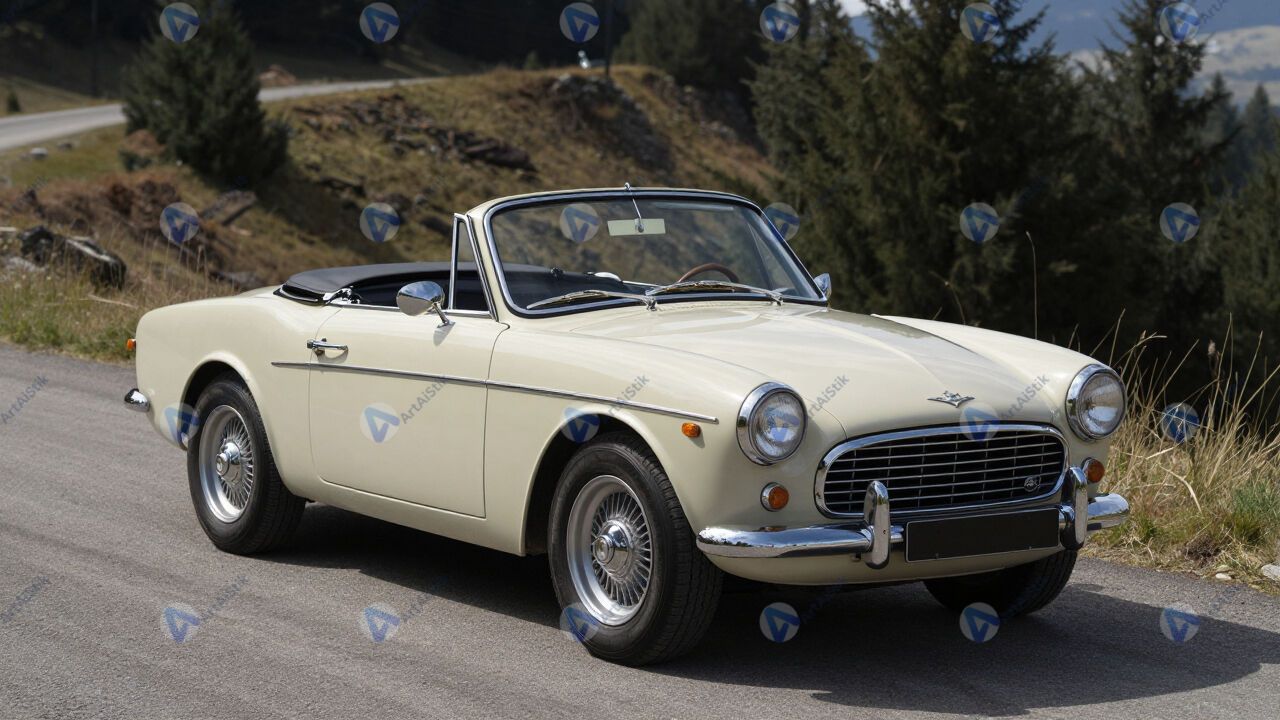 Ретро‑кабриолет с опущенной крышей на набережной.