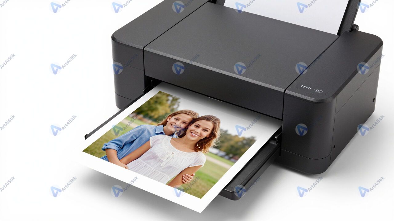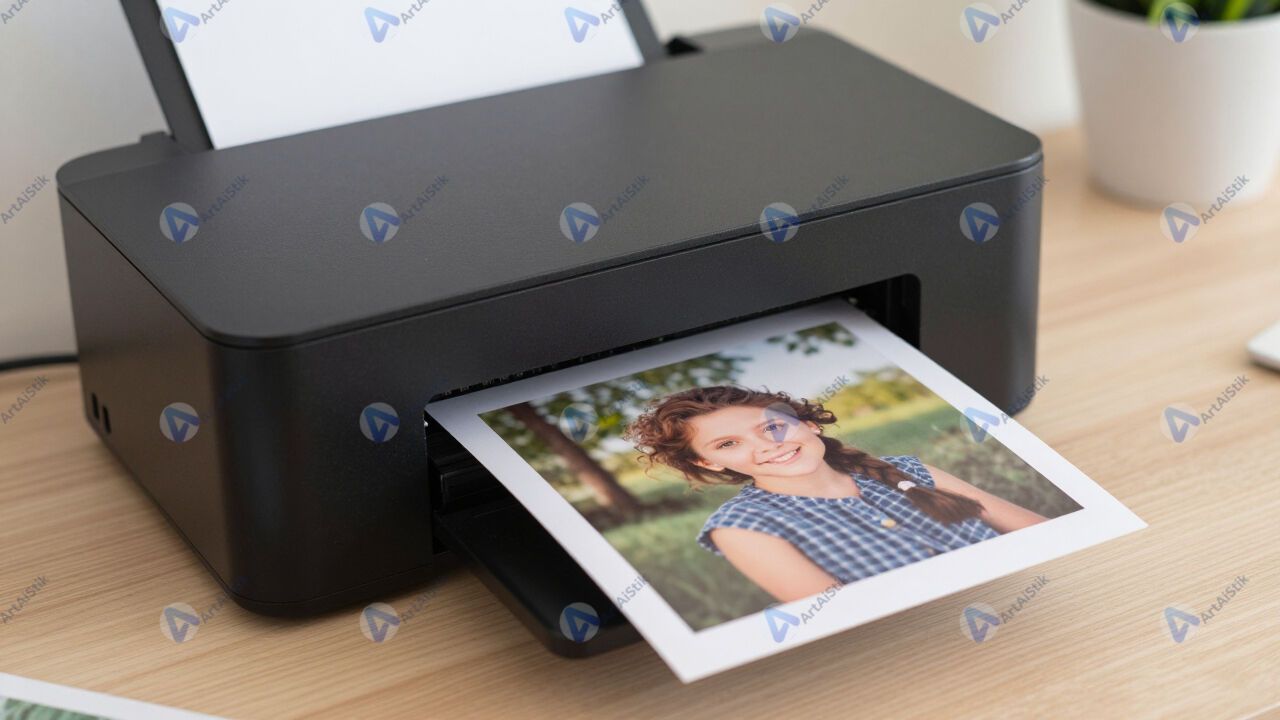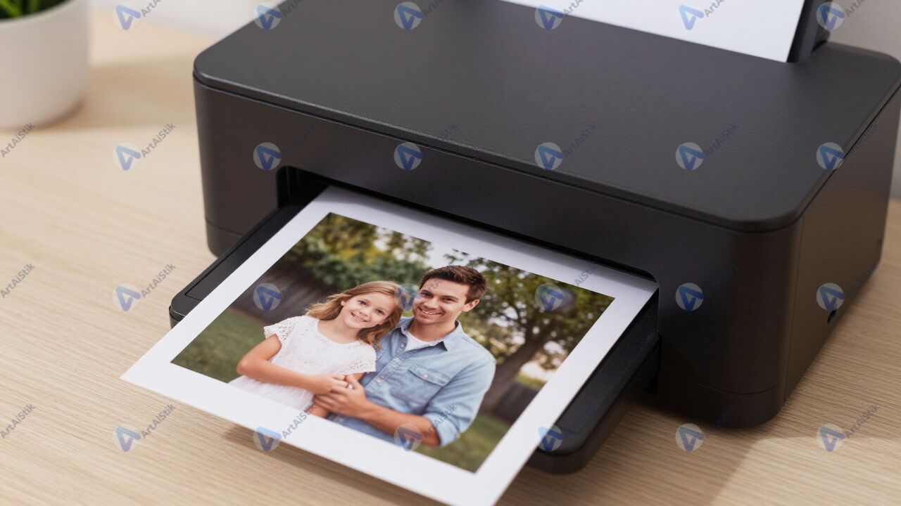 Небольшой фотопринтер печатает только что снятую фотографию.