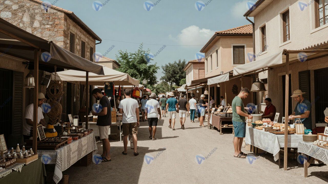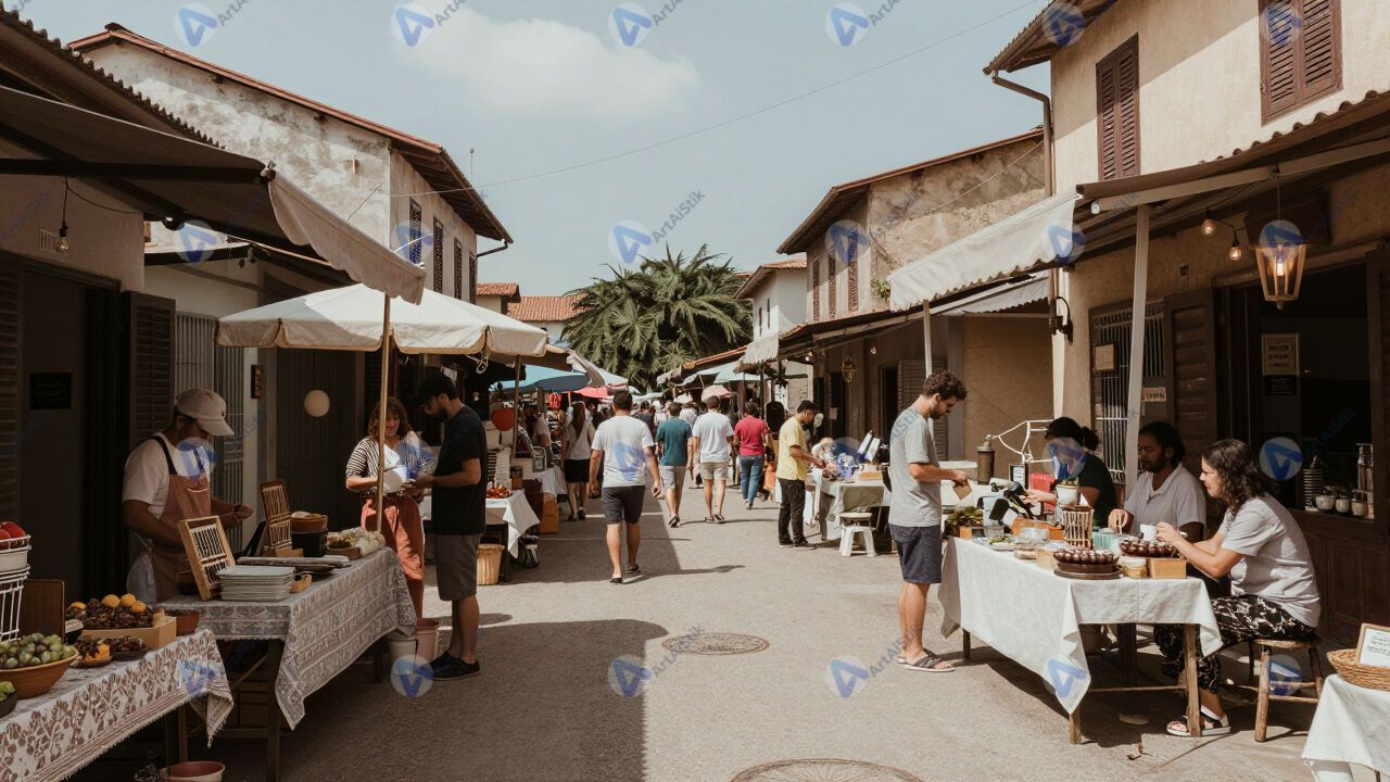 Маленькая улочка с уличным антикварным рынком.