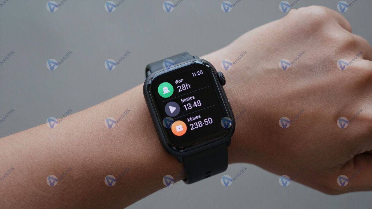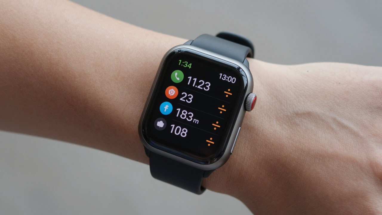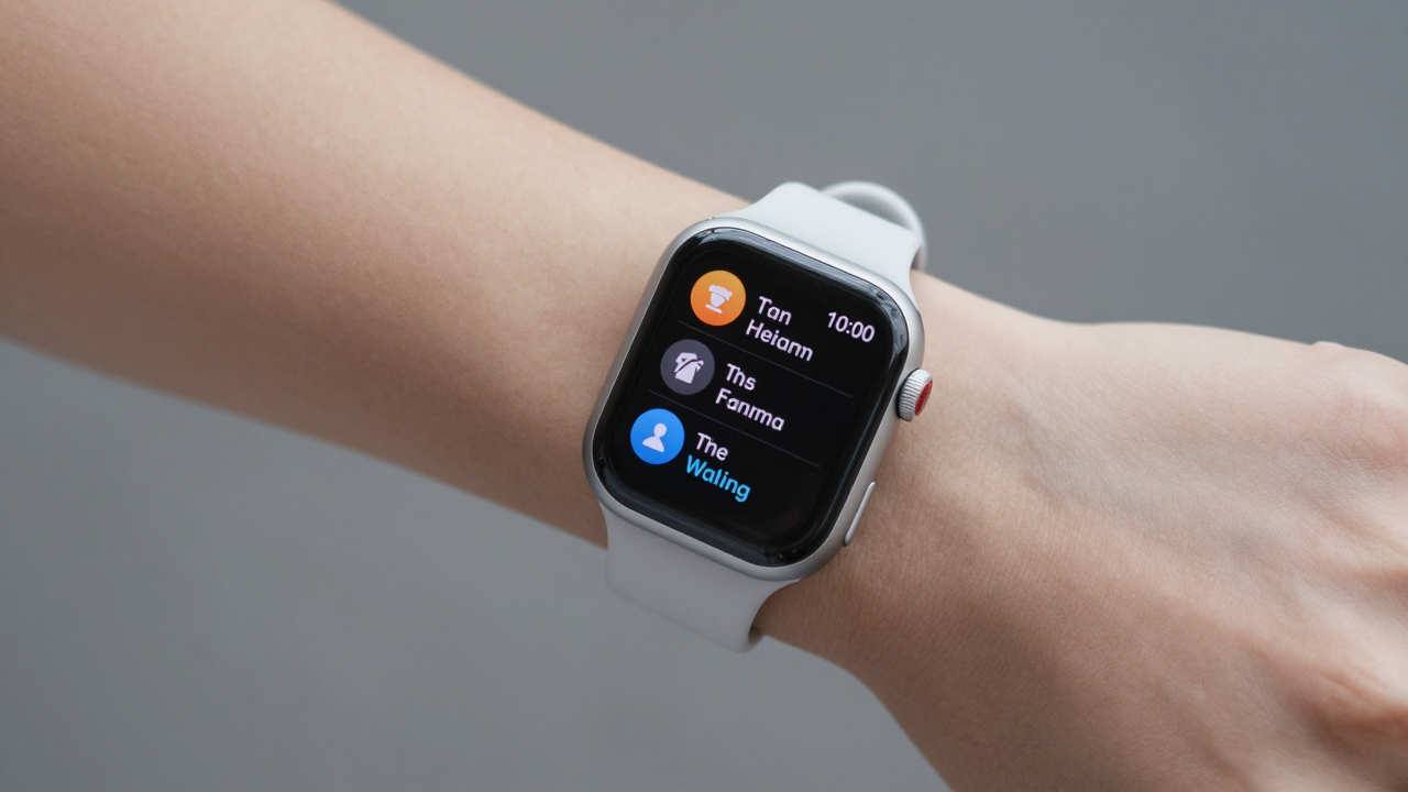 Умные часы на запястье, отображают уведомления.