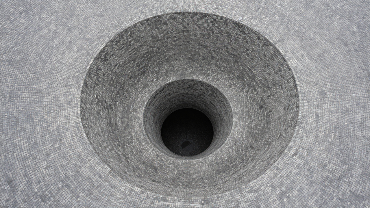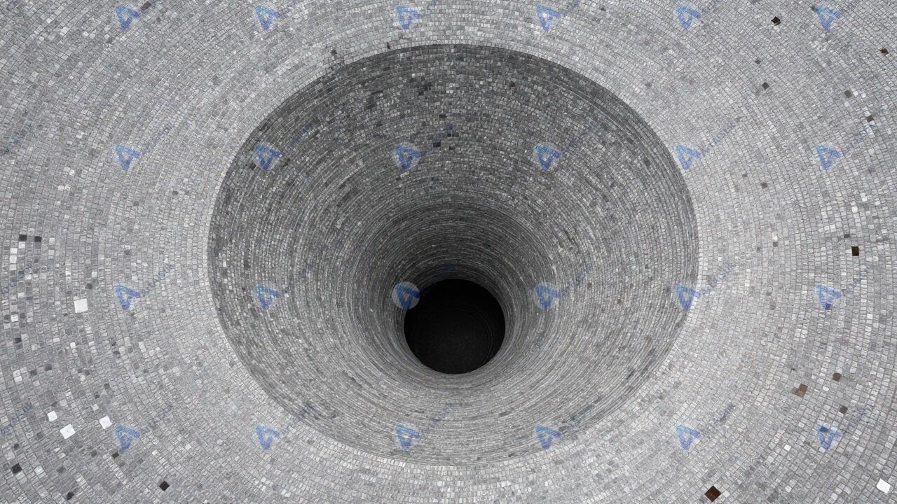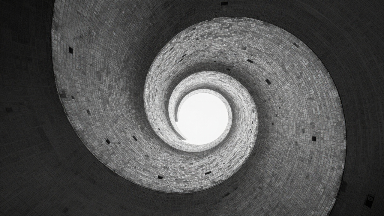 Спираль из маленьких квадратов, закручивающаяся внутрь.
