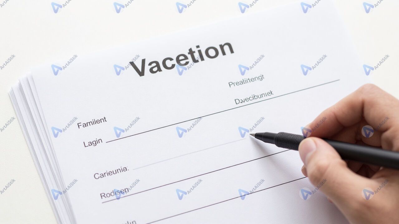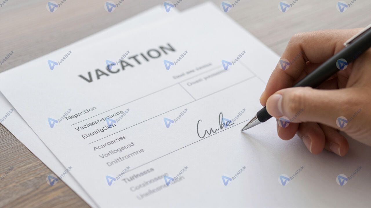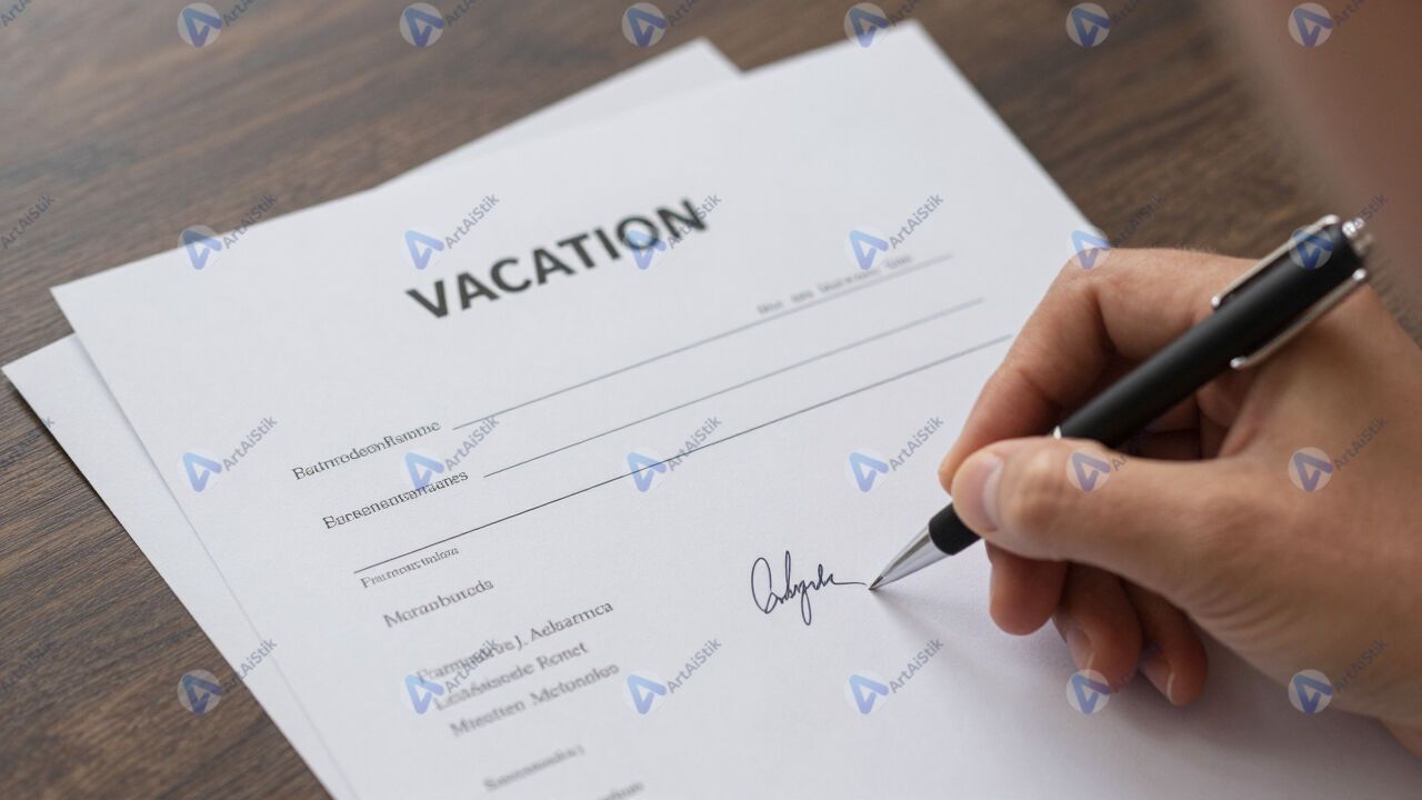 Стопка заявлений на отпуск с подписями сотрудников.