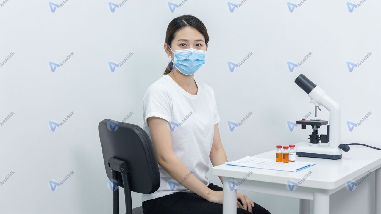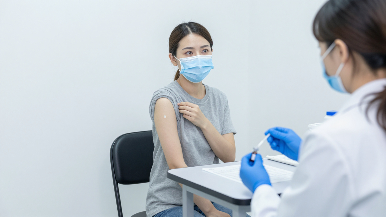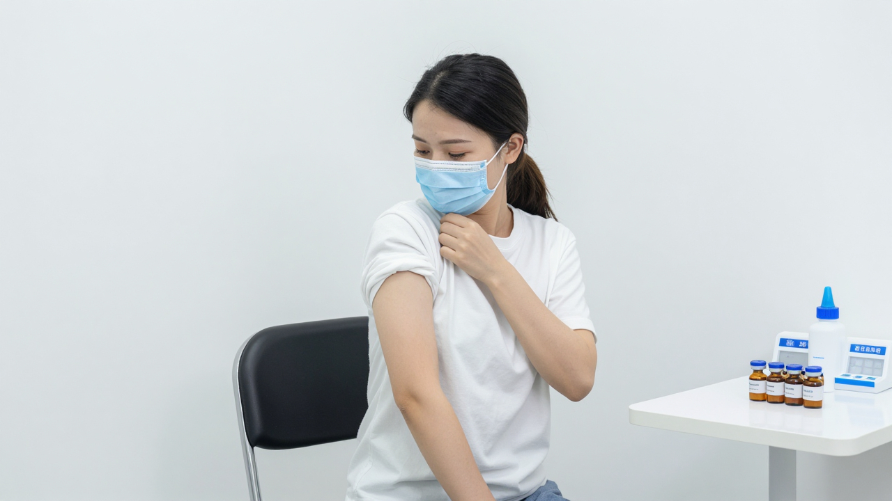 Процедурный кабинет вакцинации, кресло и стол с флаконами.