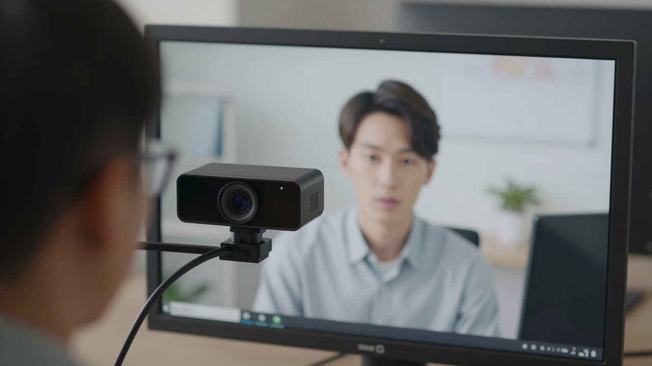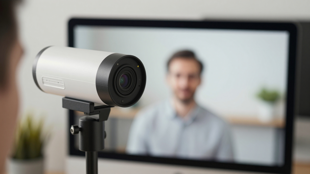 Веб‑камера на рамке монитора, сфокусирована на пользователе.