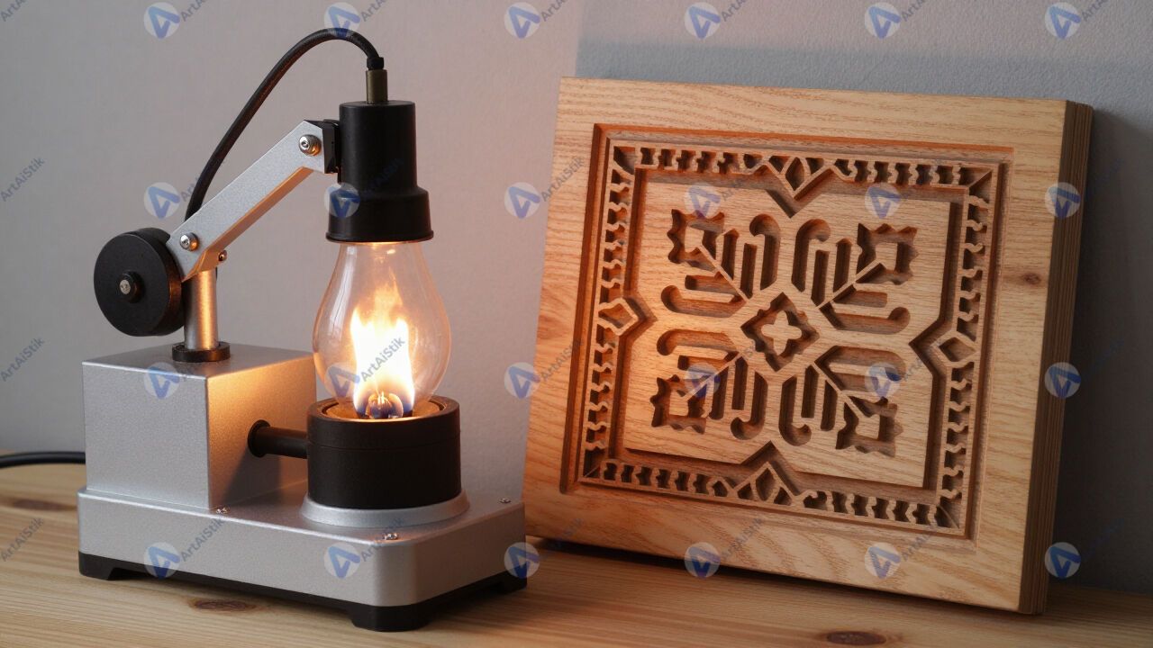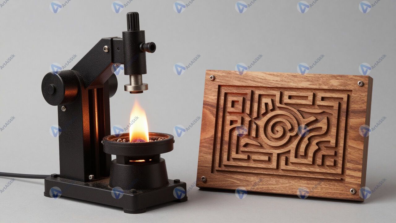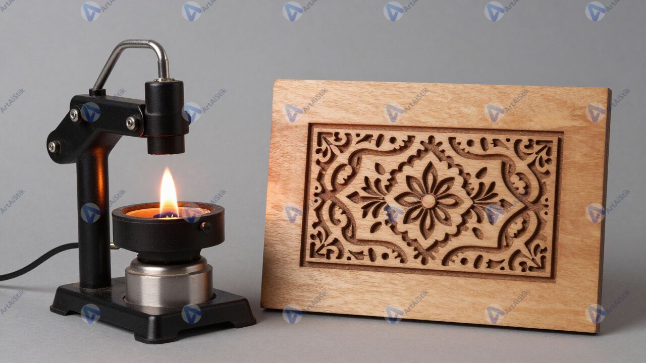 Аппарат для выжигания по дереву и узор на деревянной дощечке.
