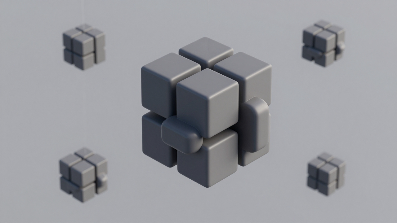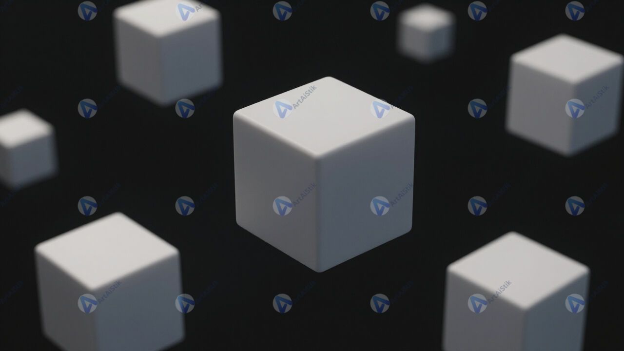 Абстрактные кубы, нависающие в пространстве, 3D‑иллюстрация.