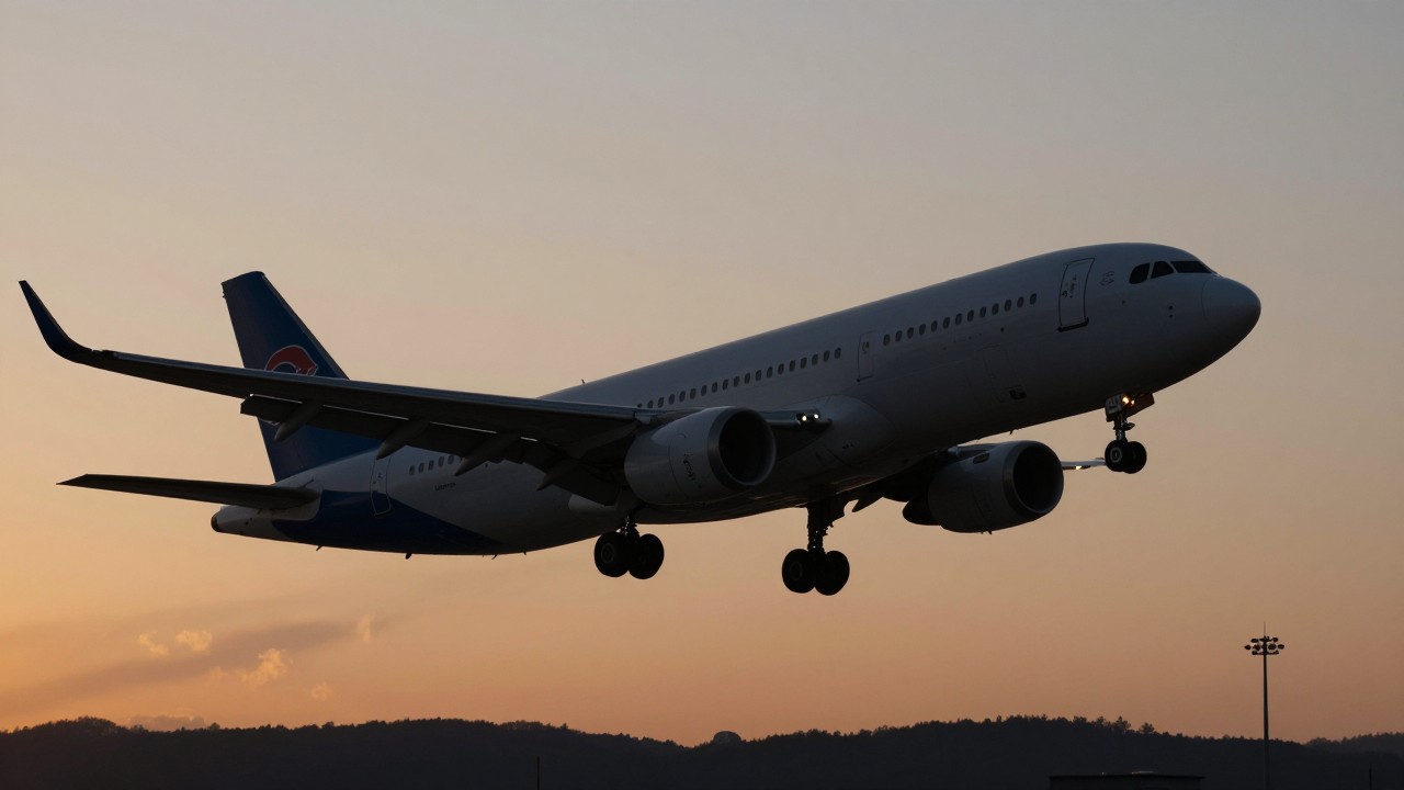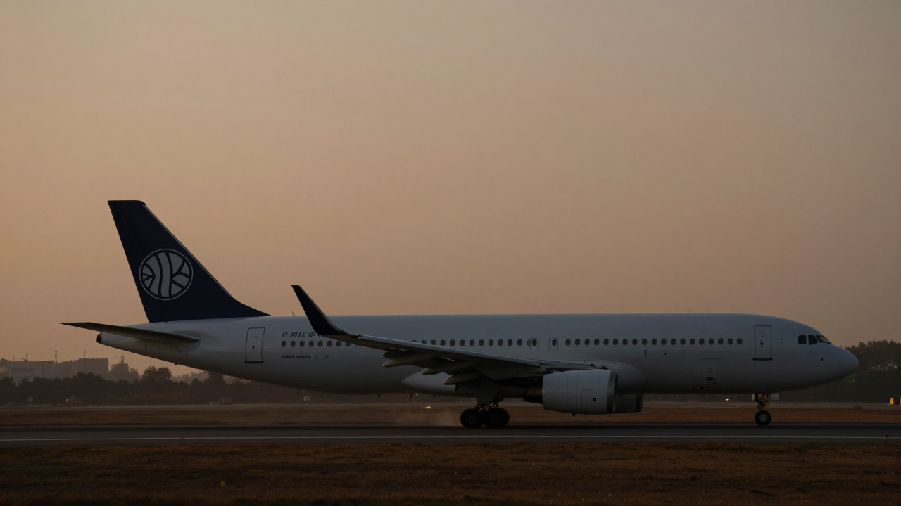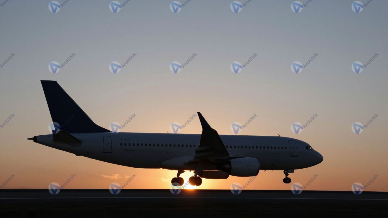 Взлётно‑посадочная полоса аэропорта, силуэт самолёта.