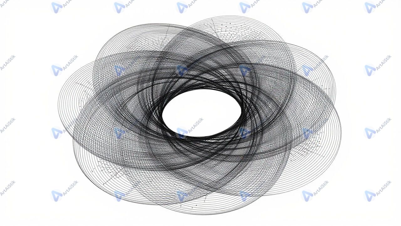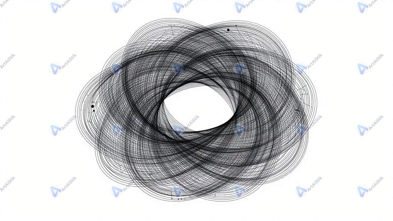 Абстрактная 3D‑форма из переплетённых линий и точек.