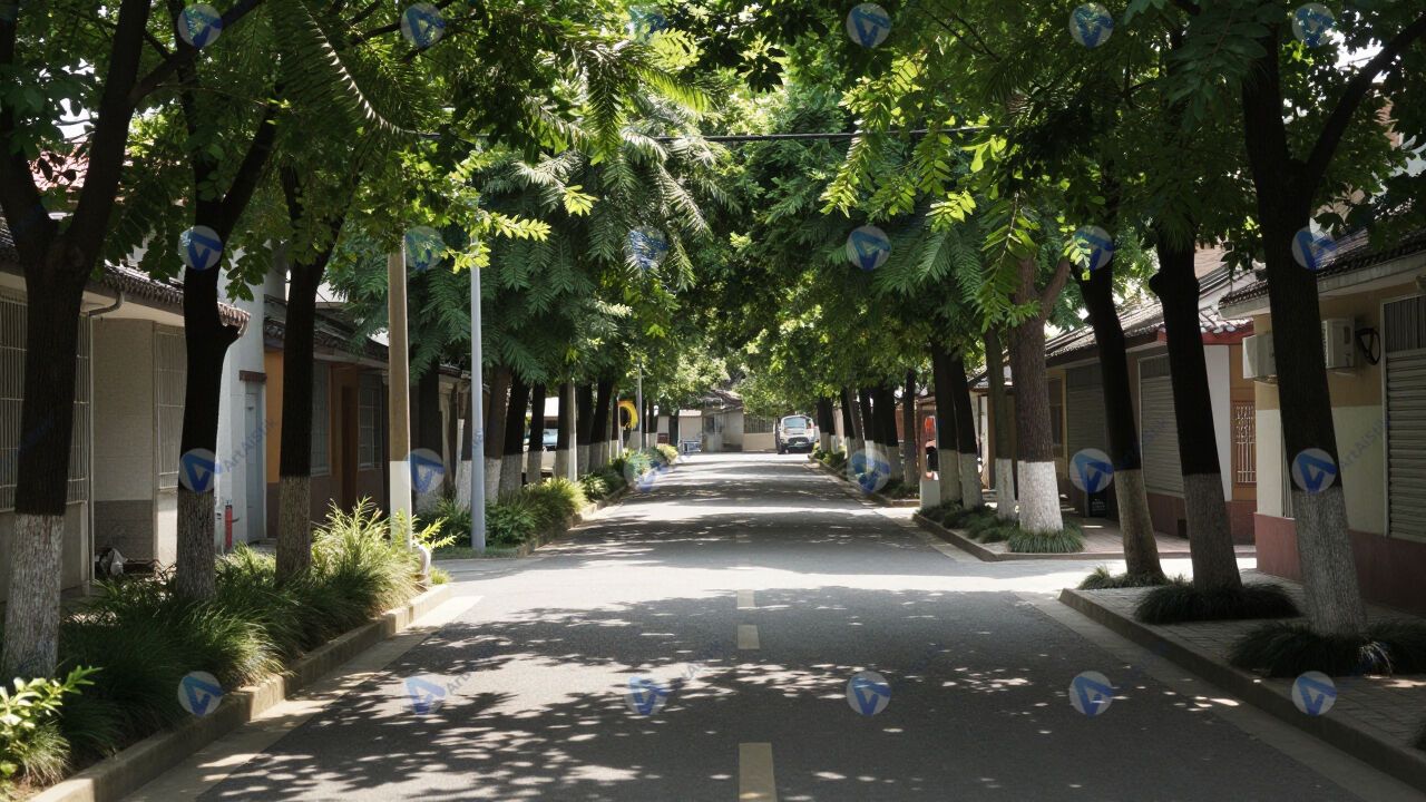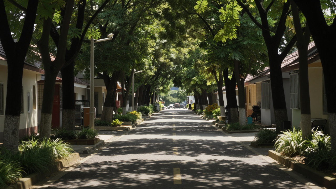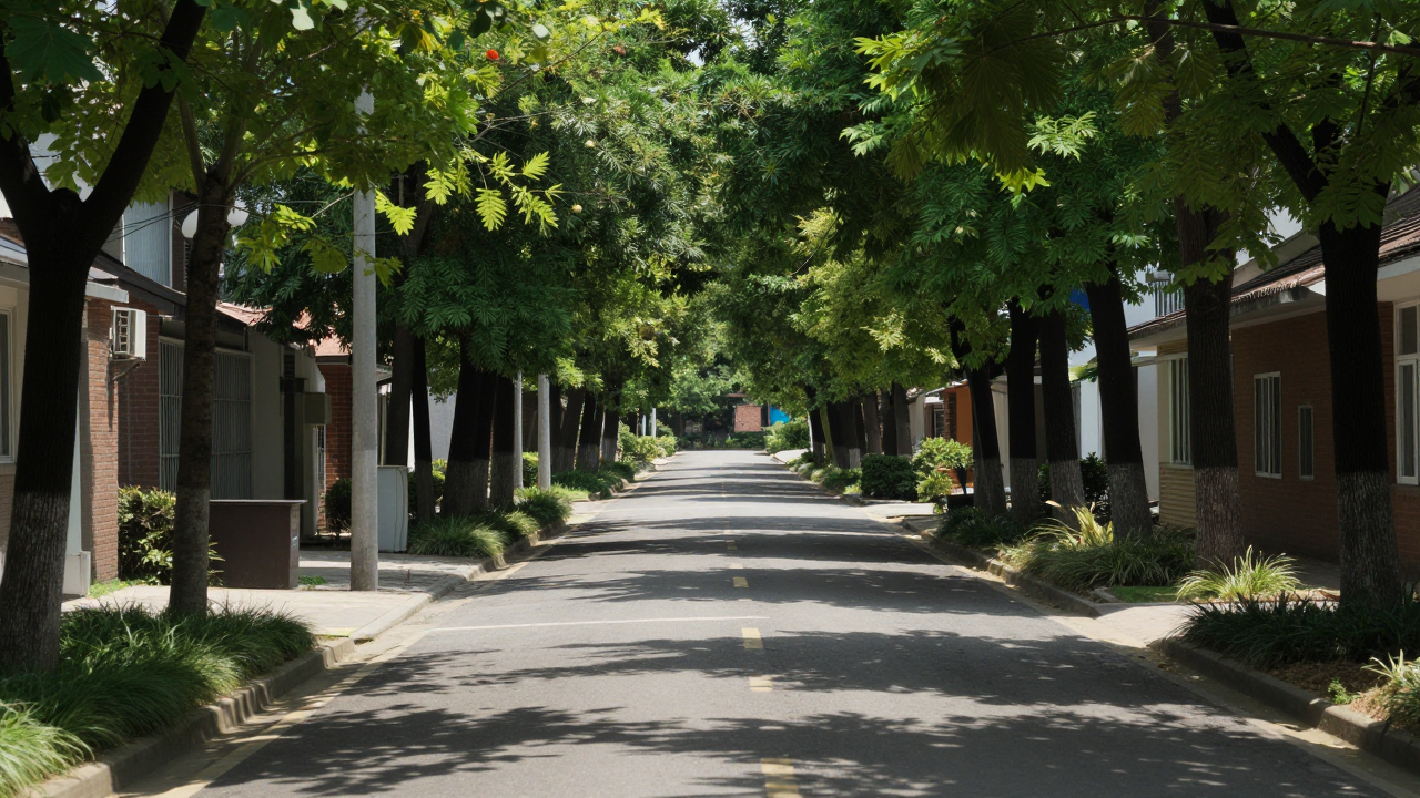 Аллея с деревьями по обеим сторонам, тени на асфальте.