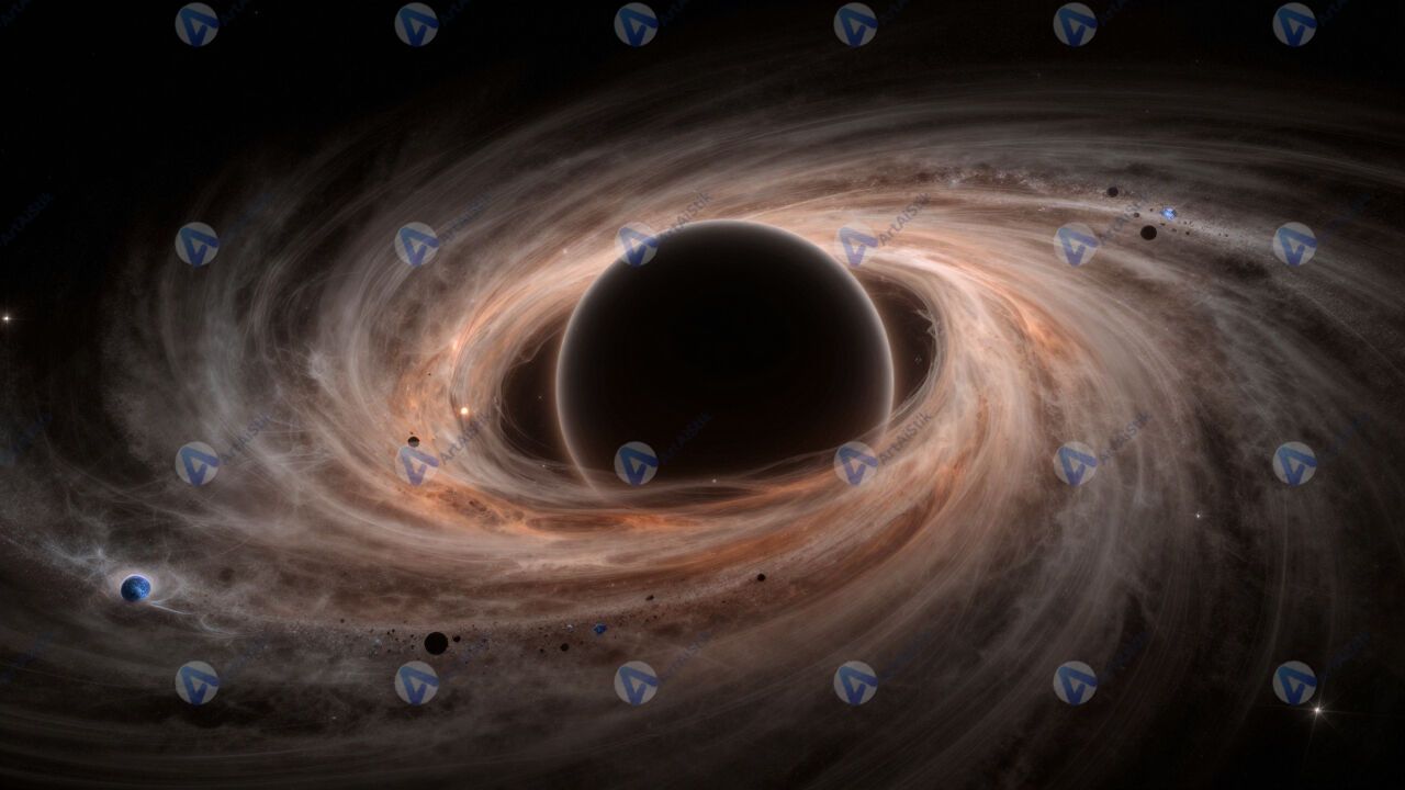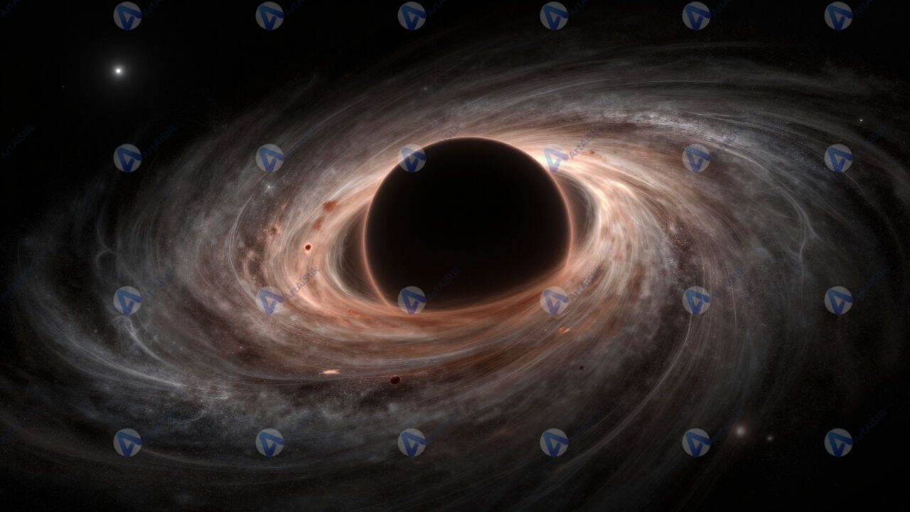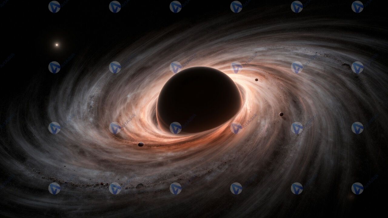 Художественная визуализация чёрной дыры и аккреционного диска.
