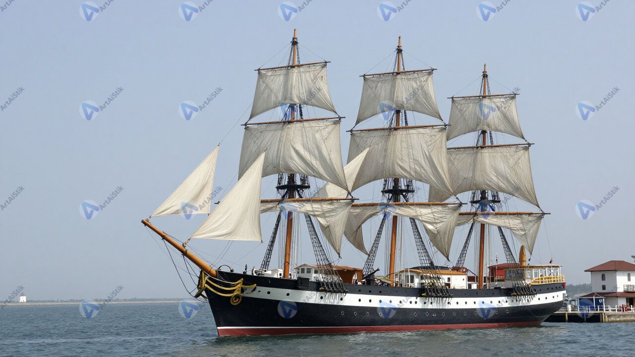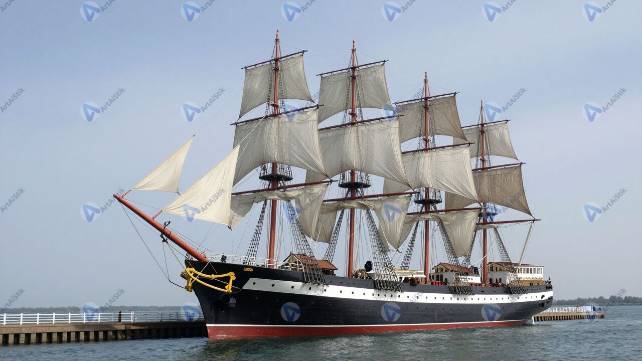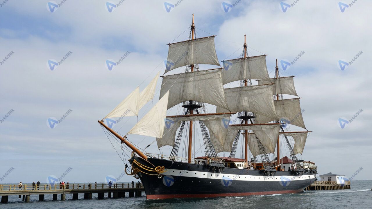 Старый парусный корабль‑музей у набережной.