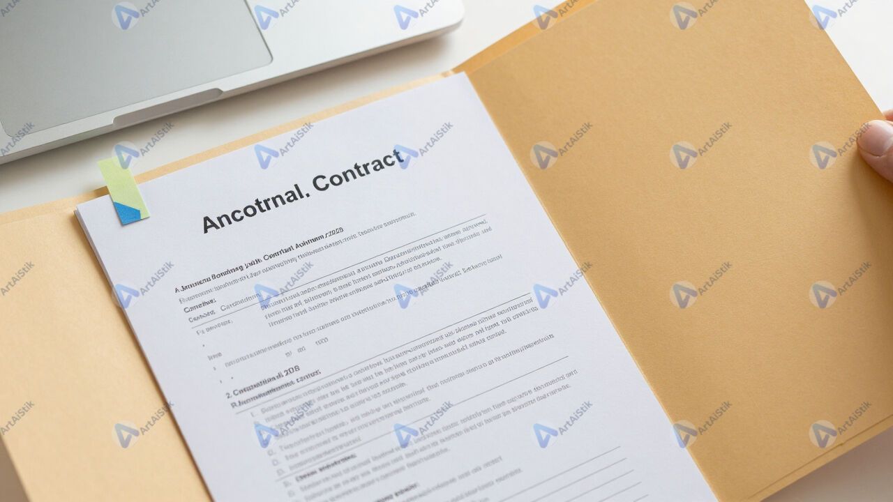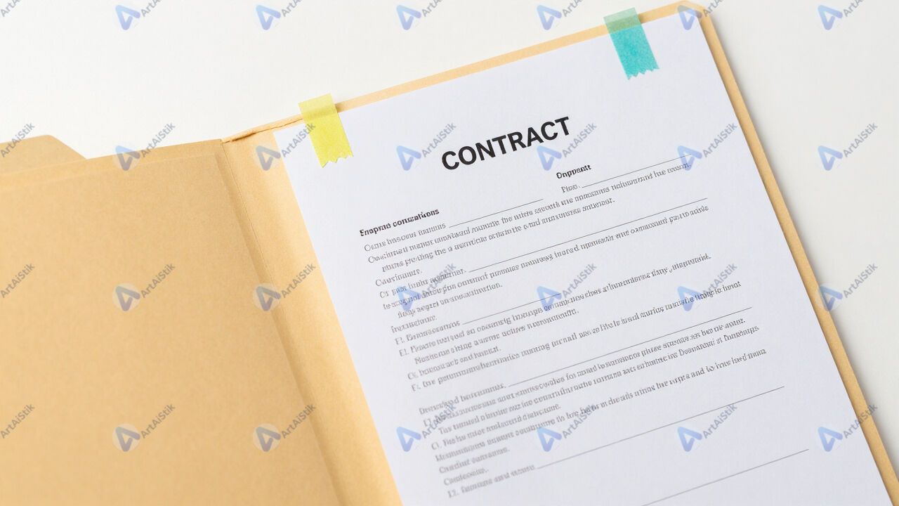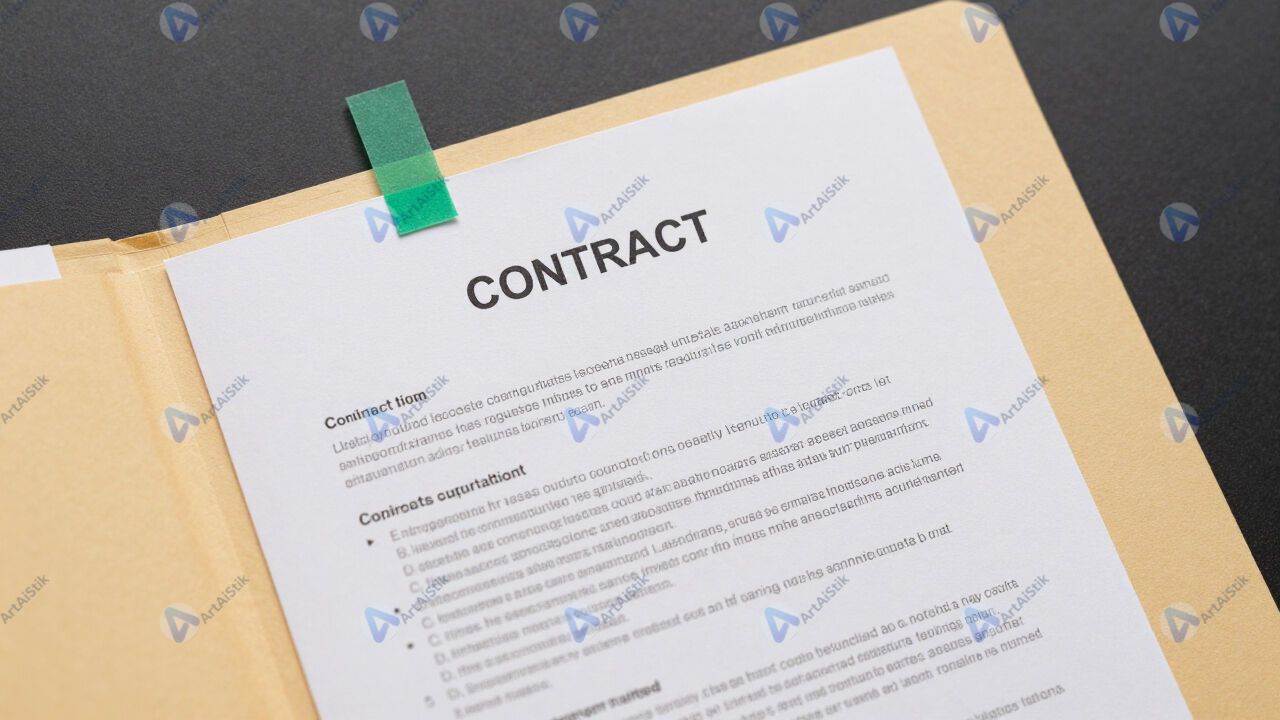 Открытая папка с договорами и стикерами‑закладками.