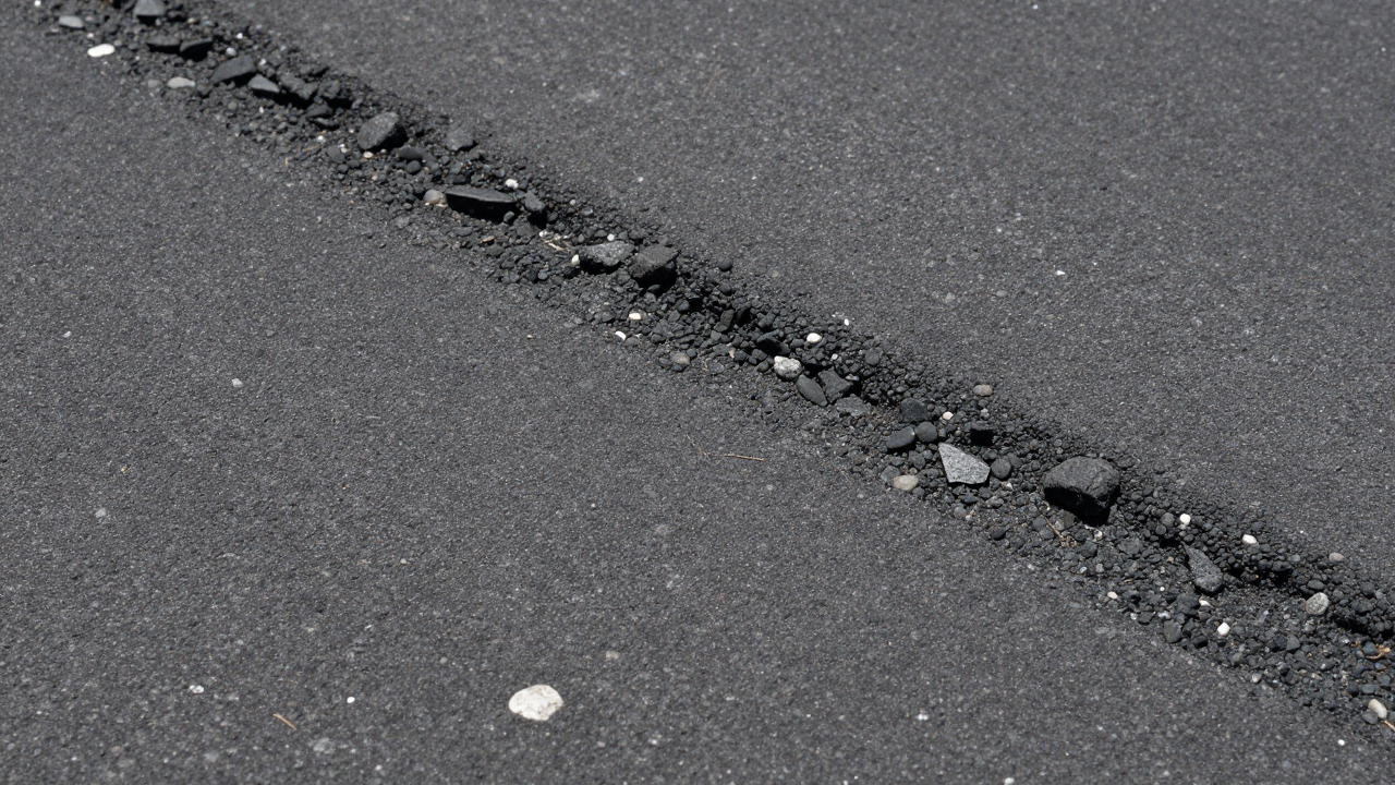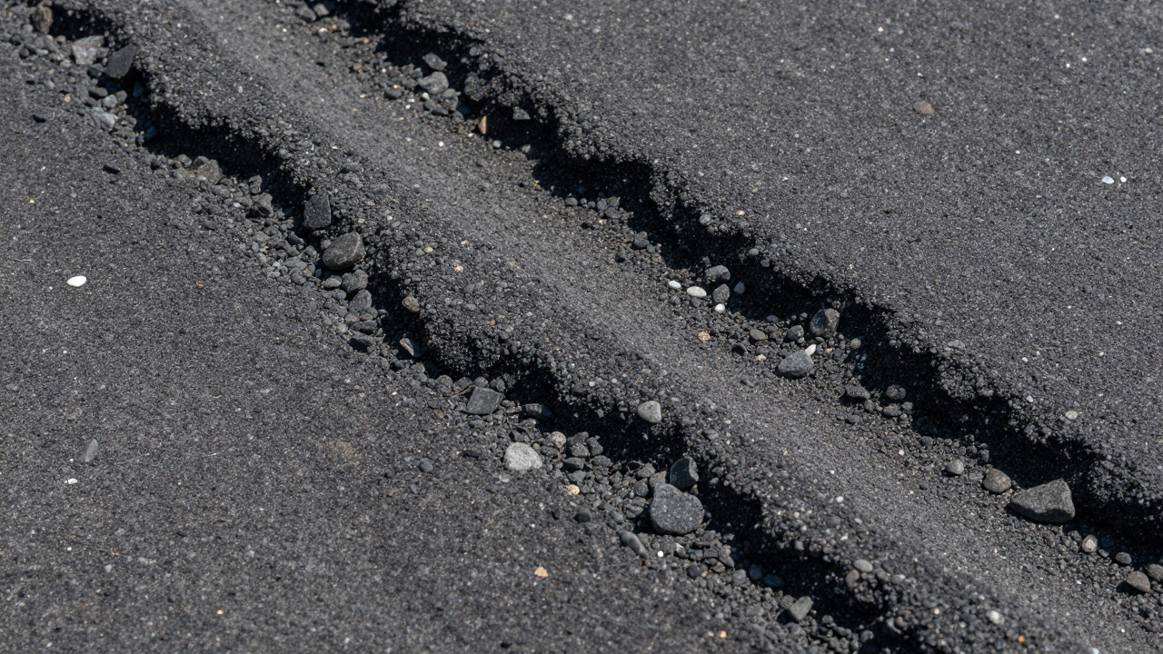 Асфальт крупным планом, камешки и неровная структура.