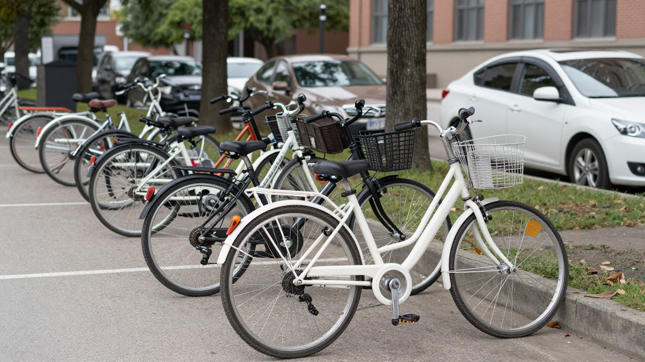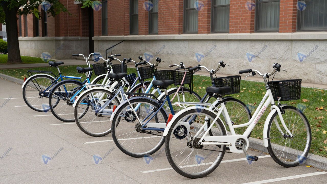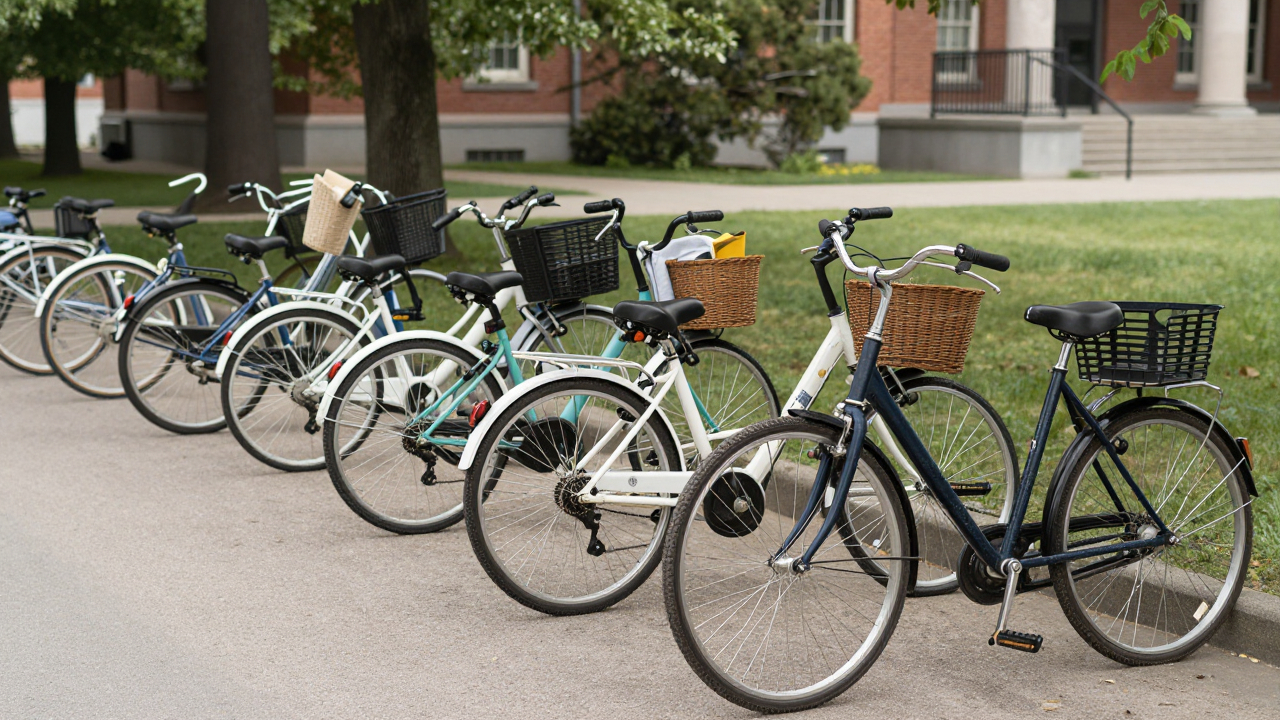 Велосипедная парковка у университета, множество разных моделей.