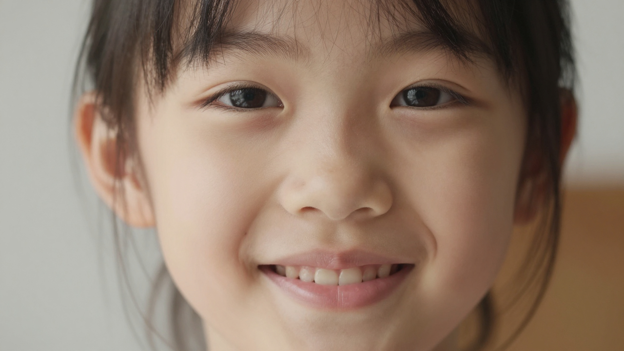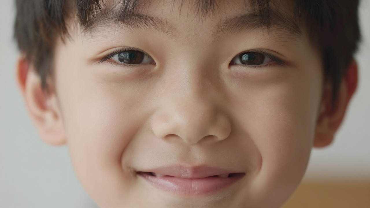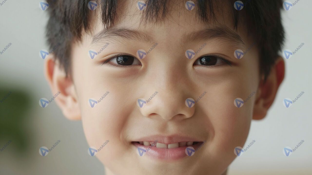 Детский портрет, крупный план лица, естественный свет, улыбка.