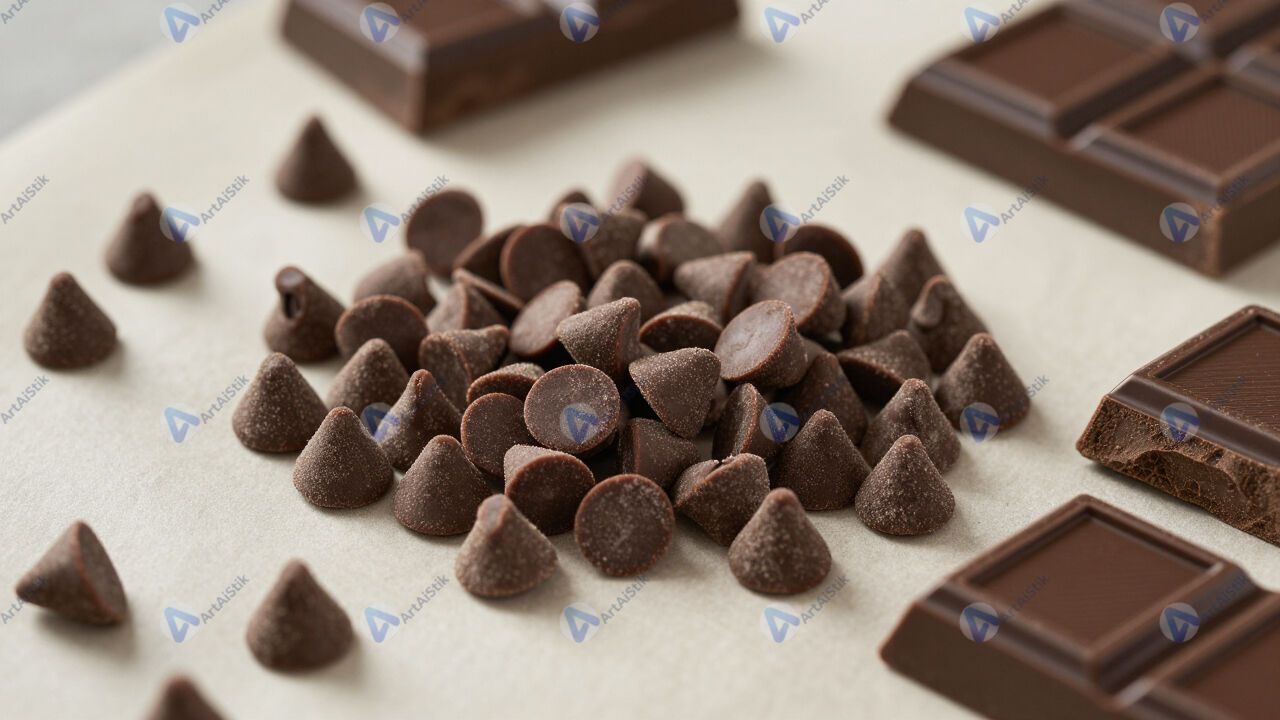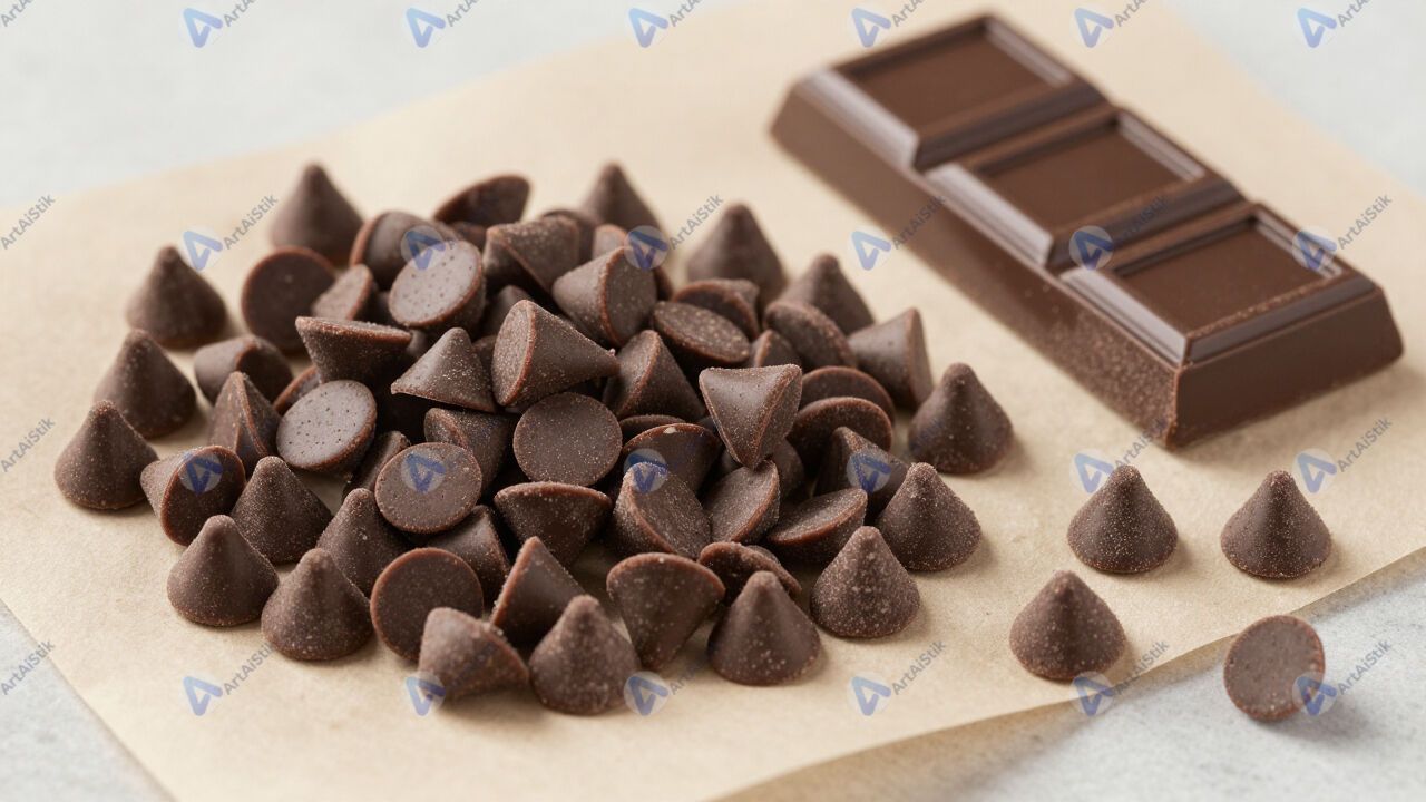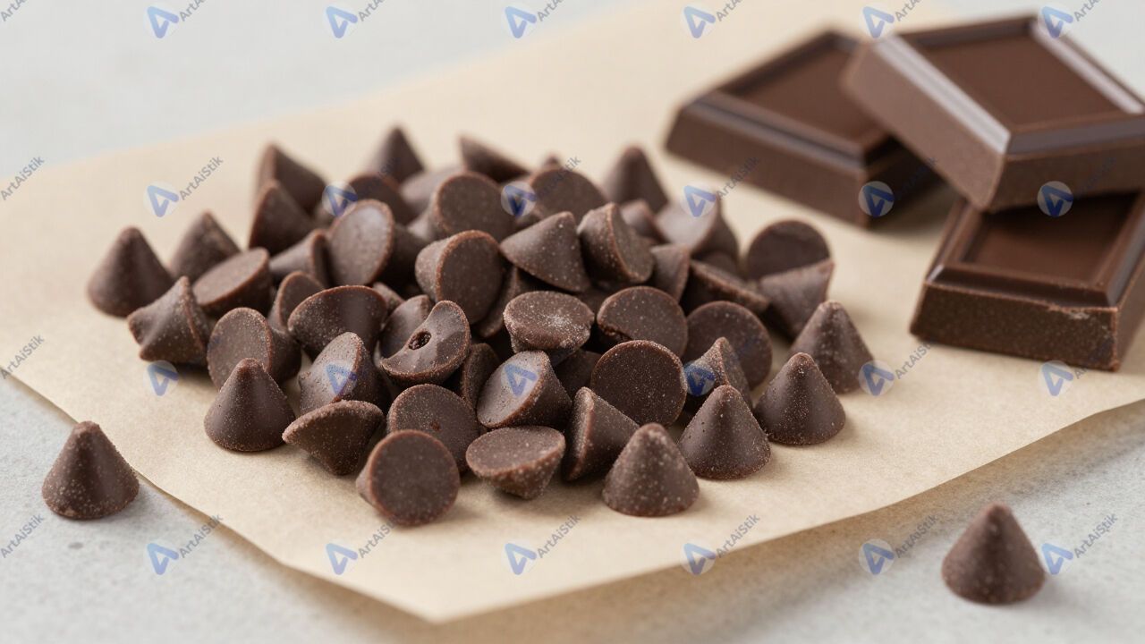 Шоколадная стружка и куски тёмного шоколада на пергаменте.