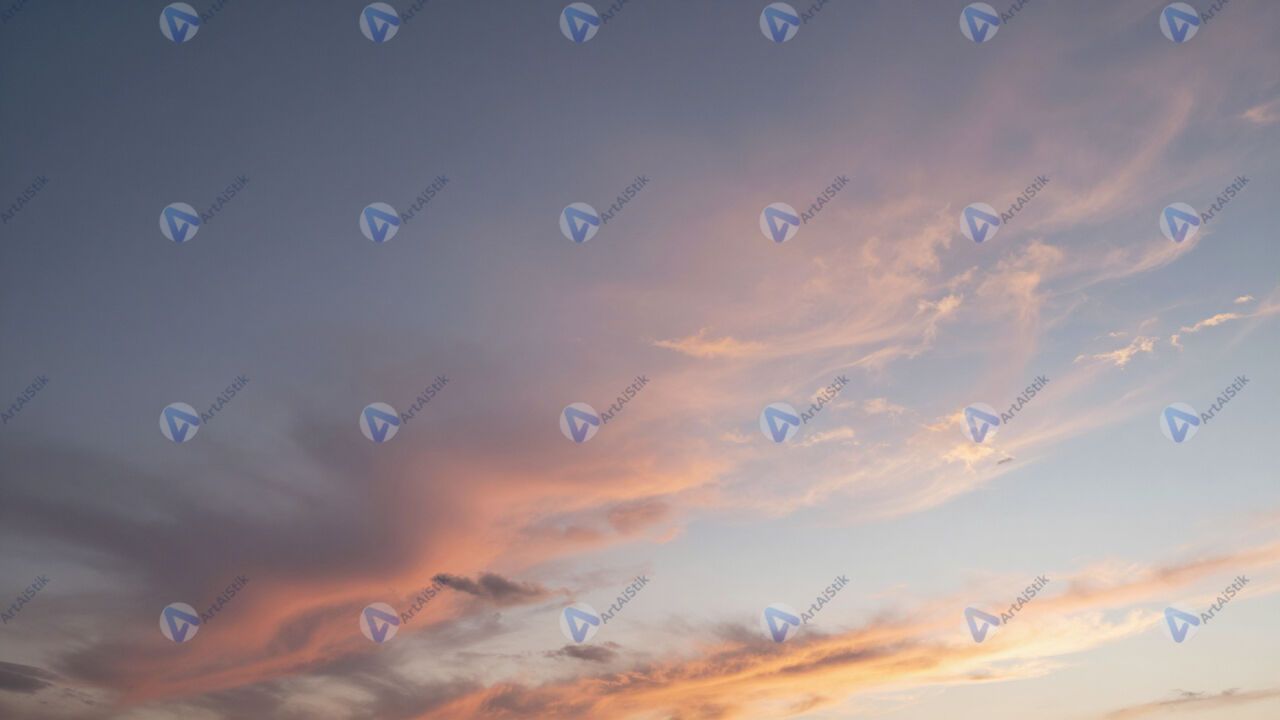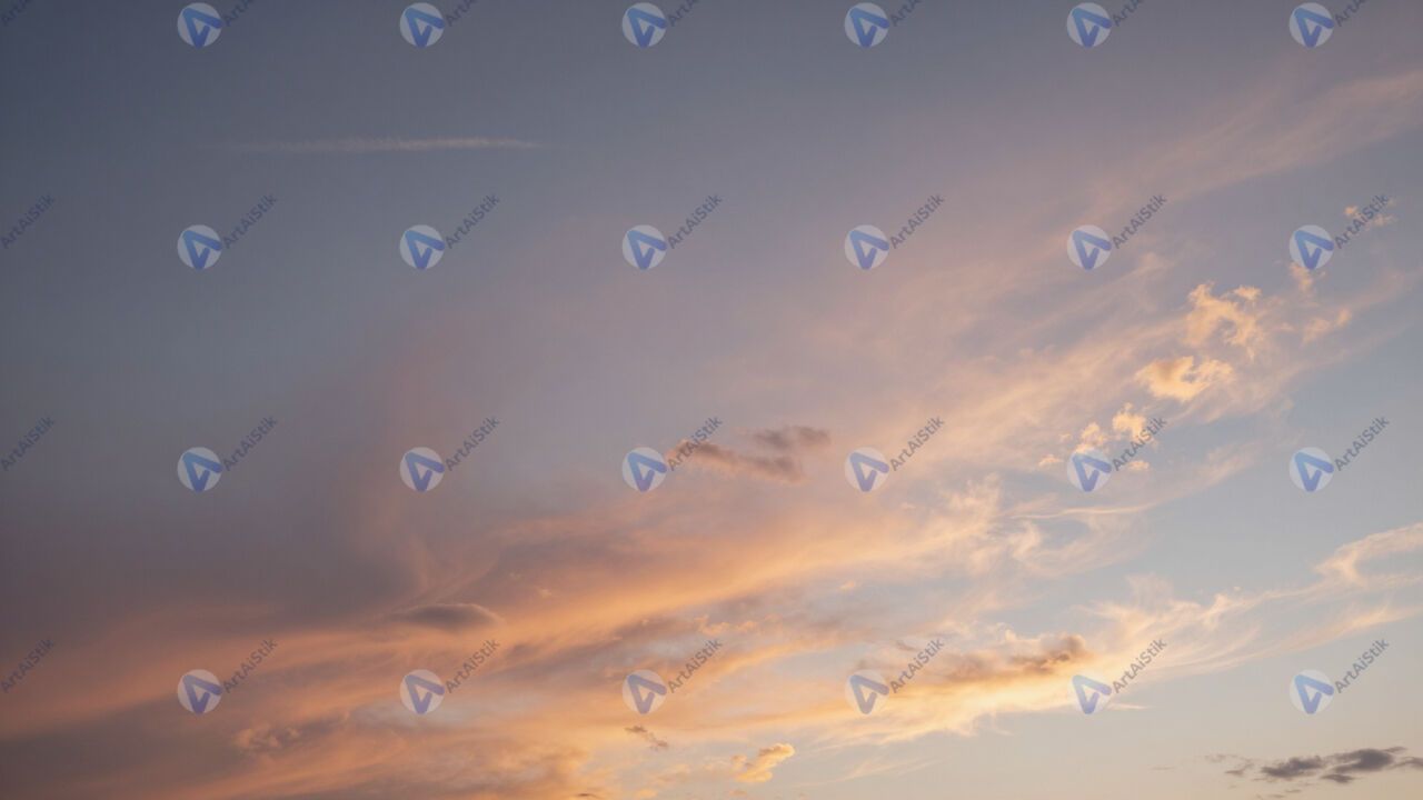 Перистые облака на закате, «перья» розовые и золотые.