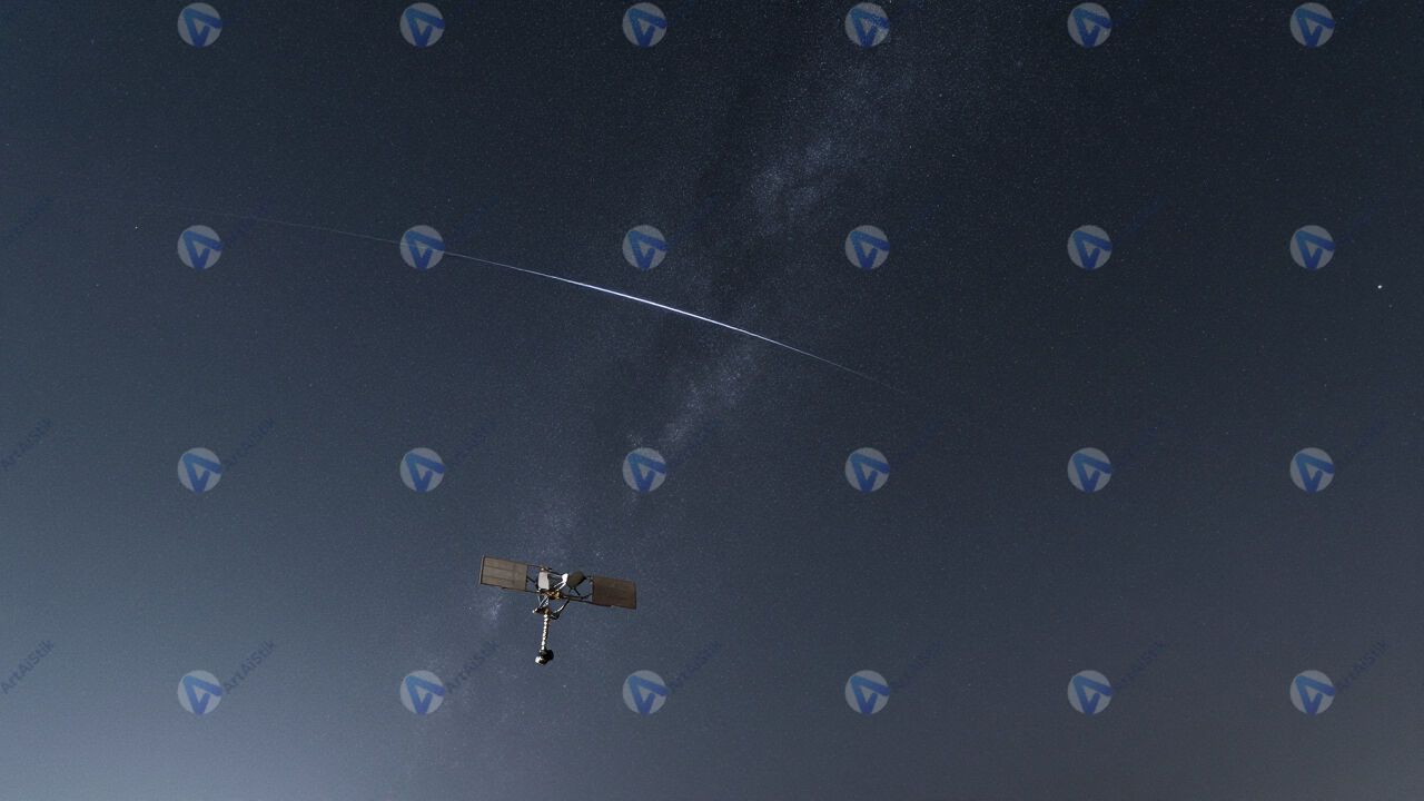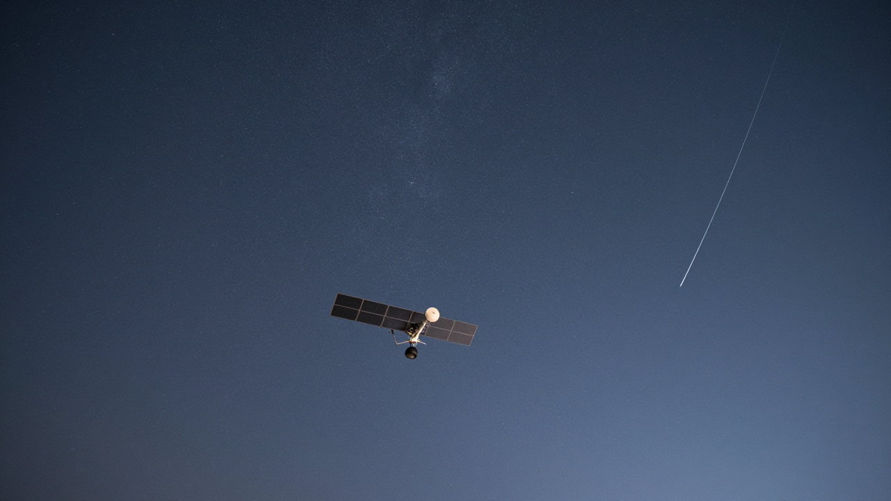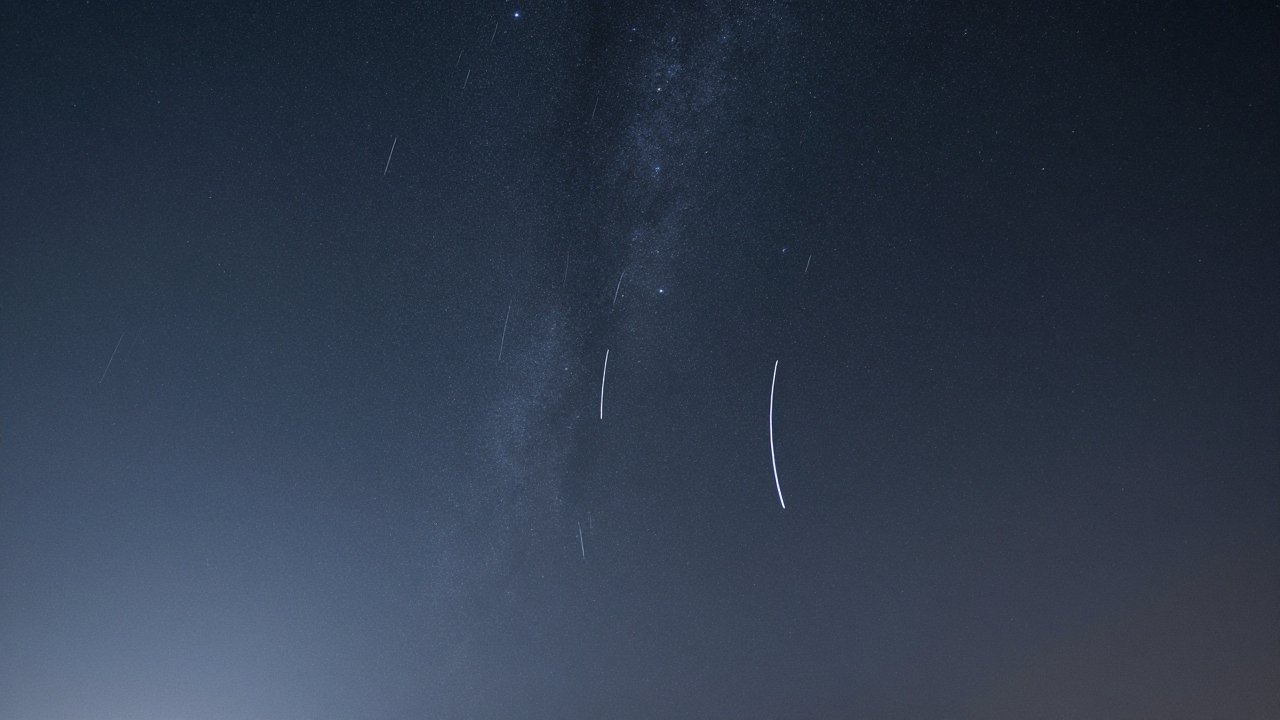 Ясное звёздное небо, след спутника, длинная выдержка.