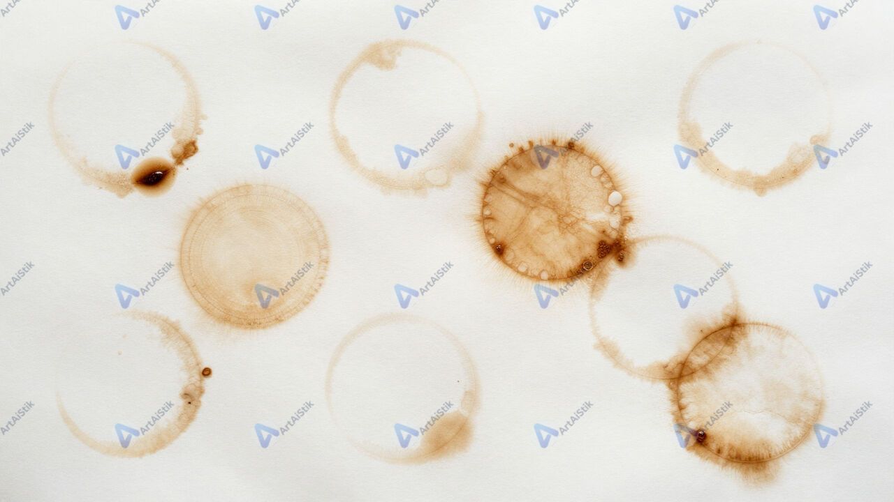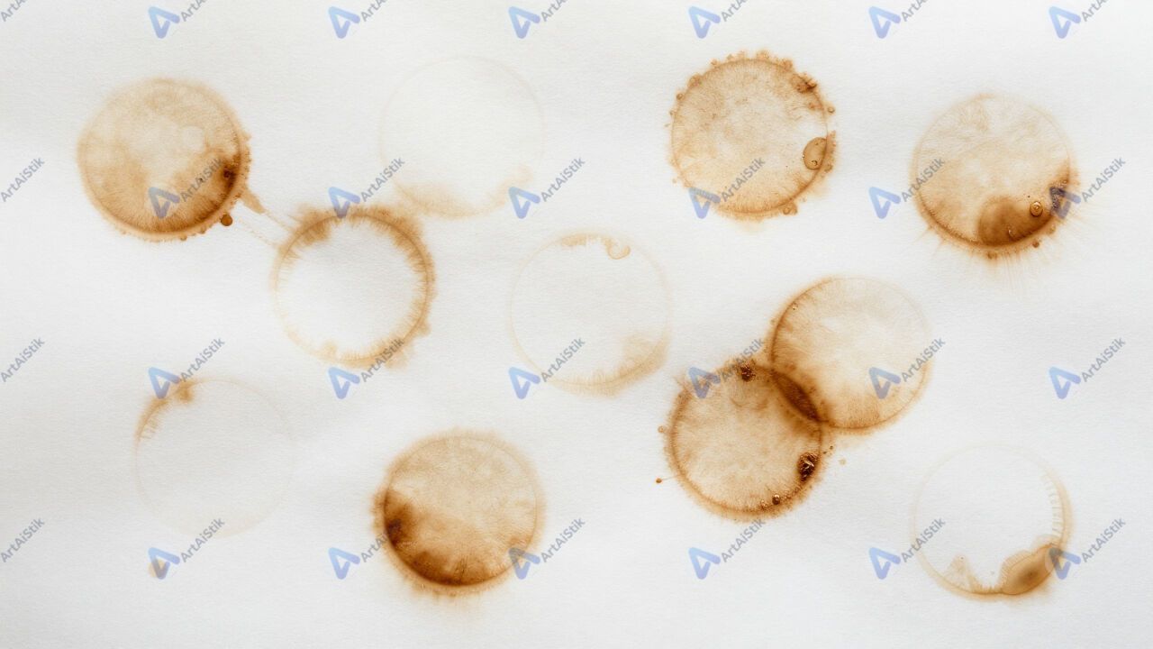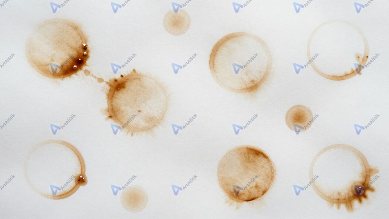 Пятна кофе на бумаге образуют случайный абстрактный узор.