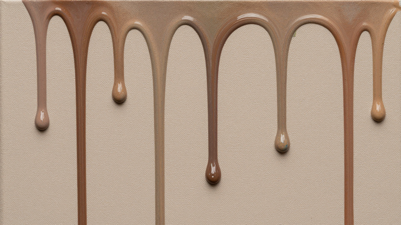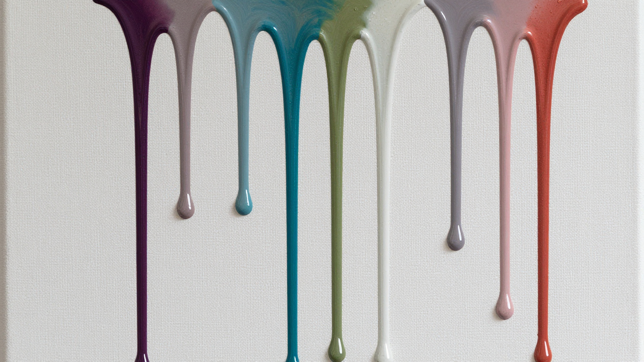Капли краски, стекшие вниз по холсту, вертикальные полосы.