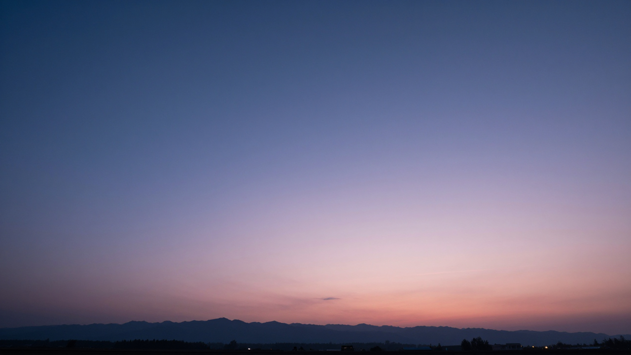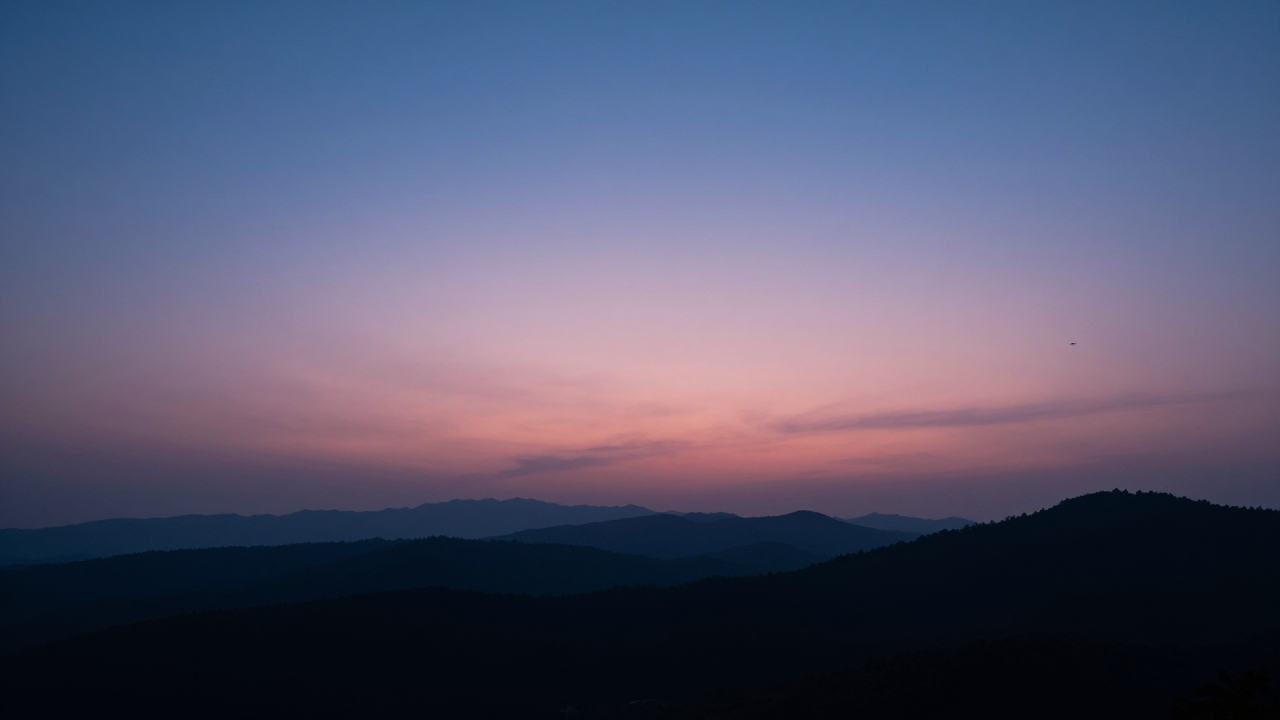 Ранний рассвет, градиент от тёмно-синего к розовому.