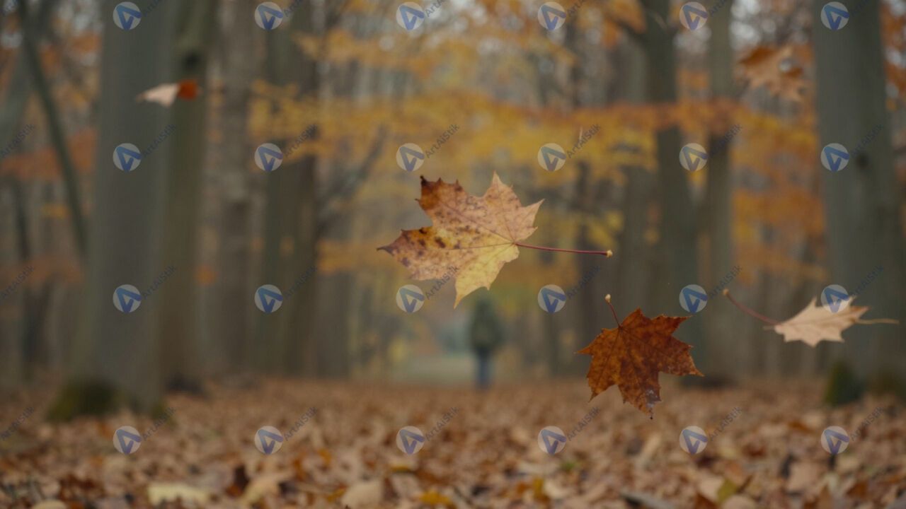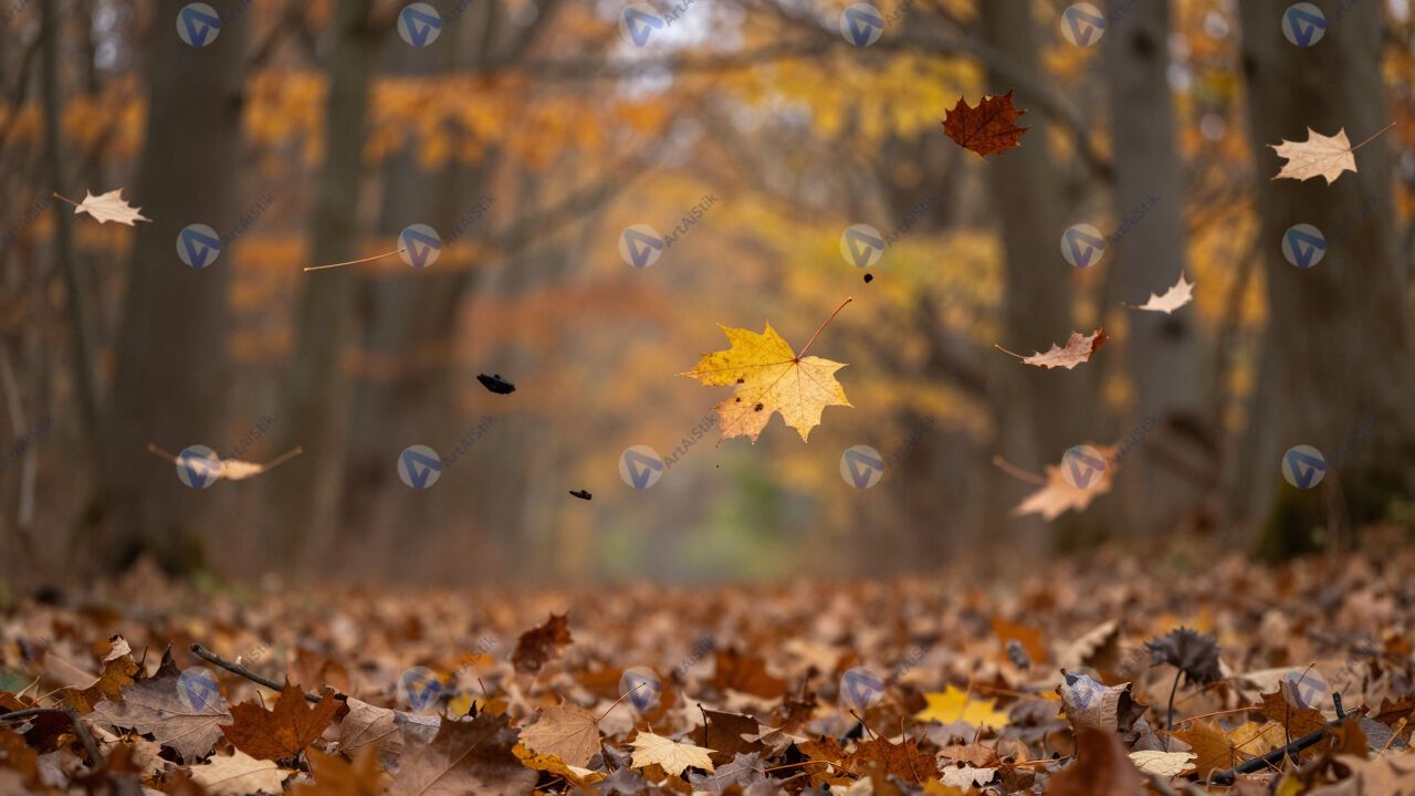 Листопад осенью, летящие листья, лес, ветер.