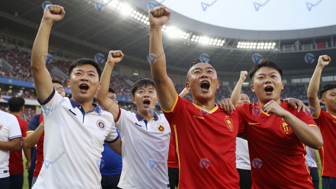 Болельщики обнимаются и кричат на стадионе после гола.