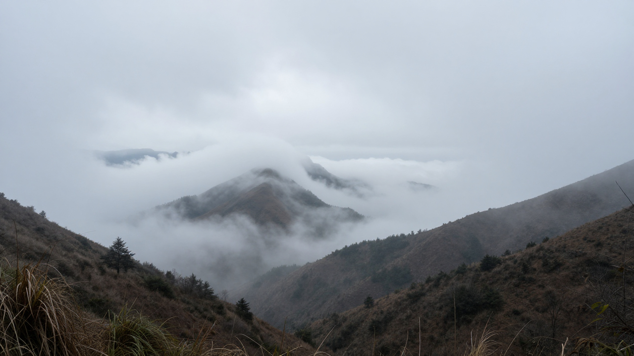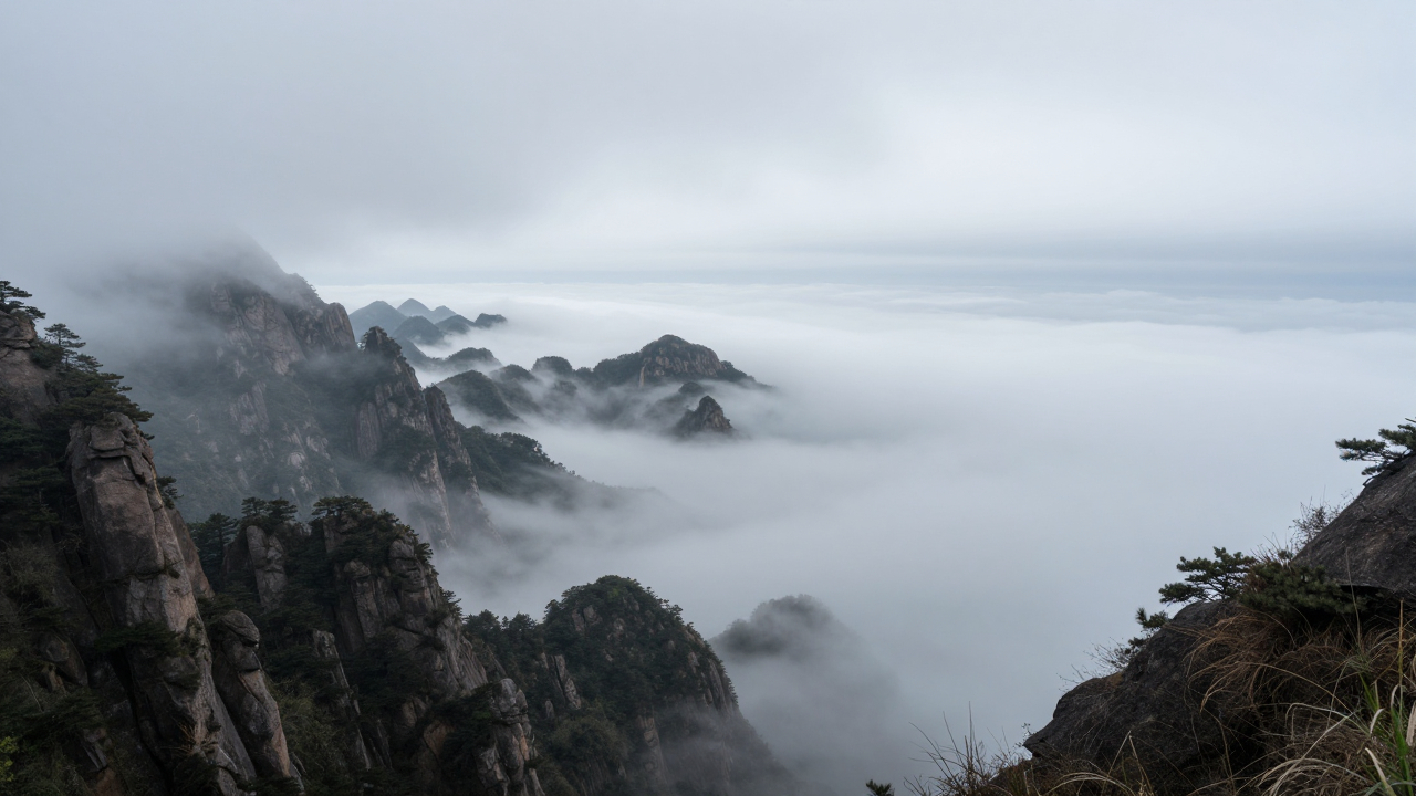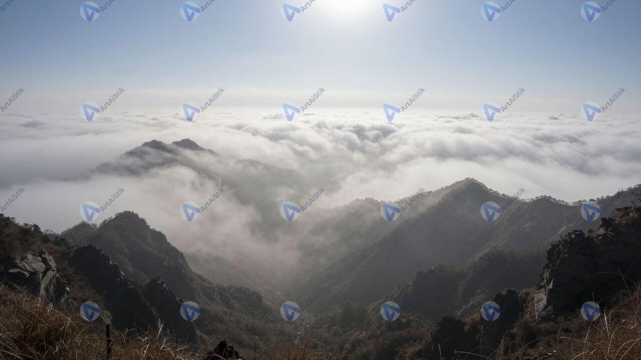 Туман в долине, «море облаков», пики выступают.