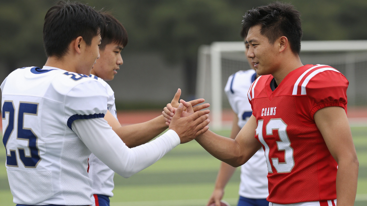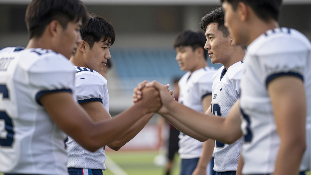 Футболисты обмениваются руками после матча, спортивное уважение.
