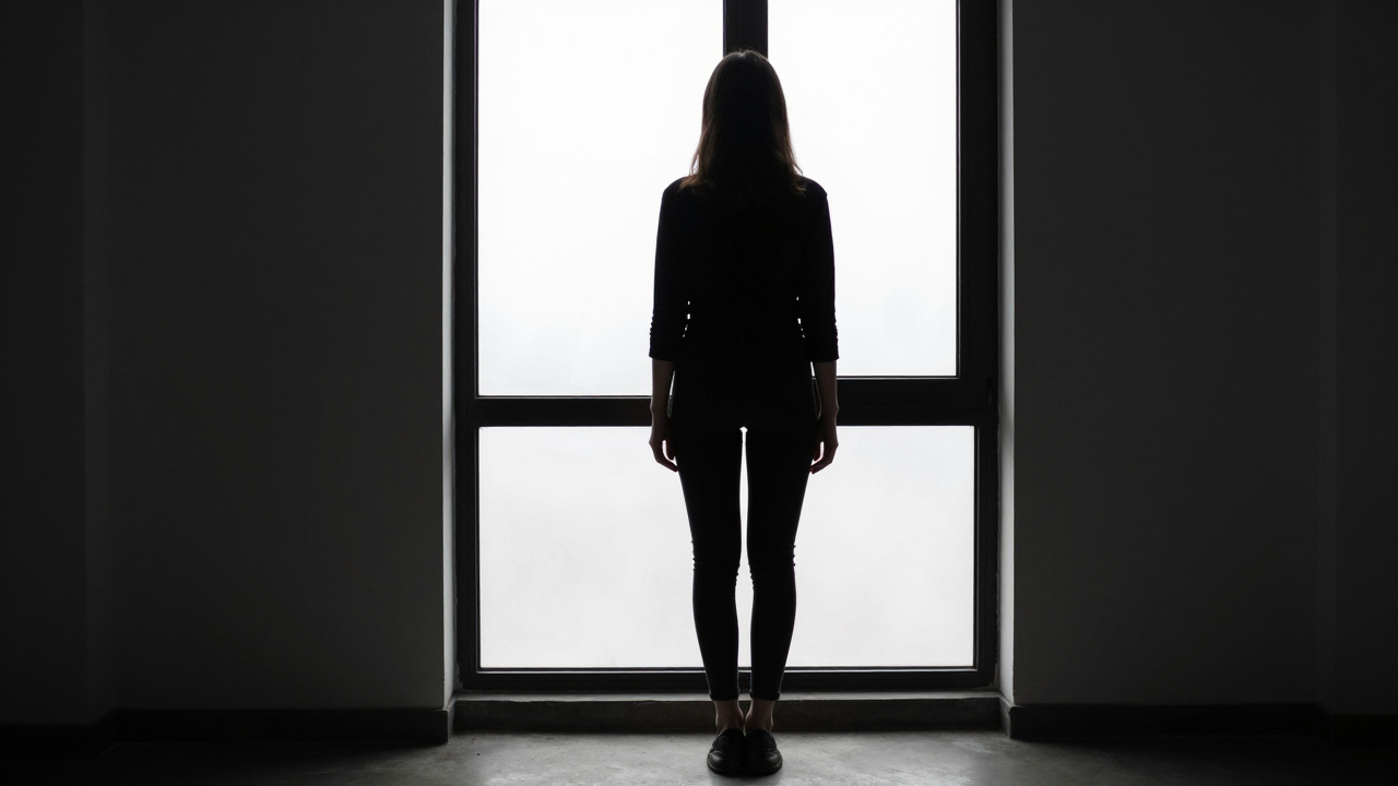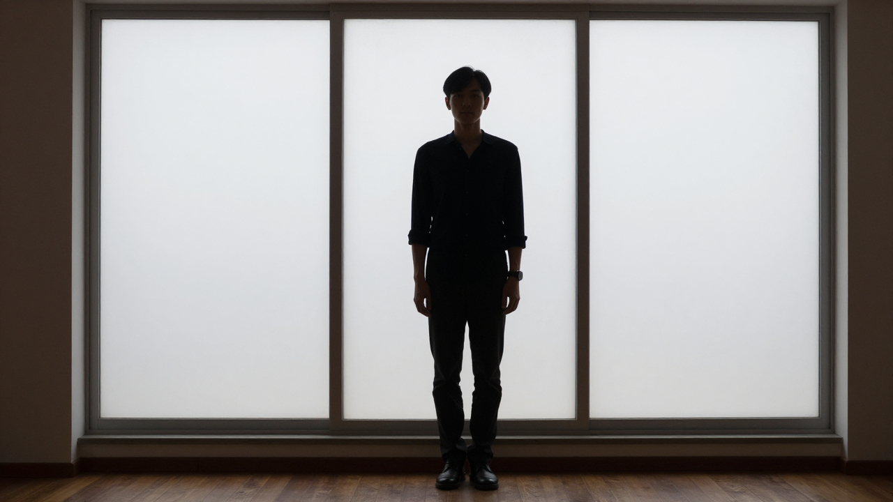 Портрет в полный рост у окна, силуэт, контровой свет.