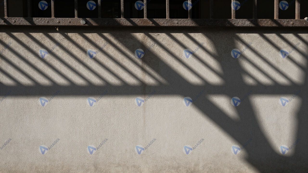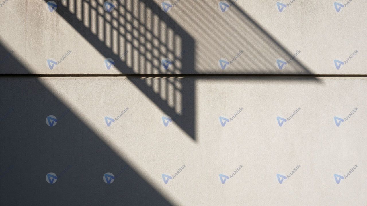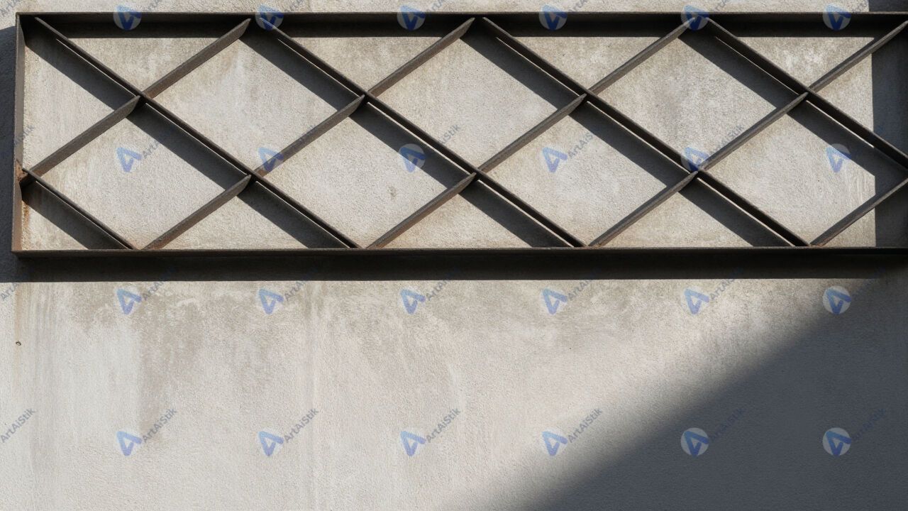 Геометрические тени от металлической решётки на стене.