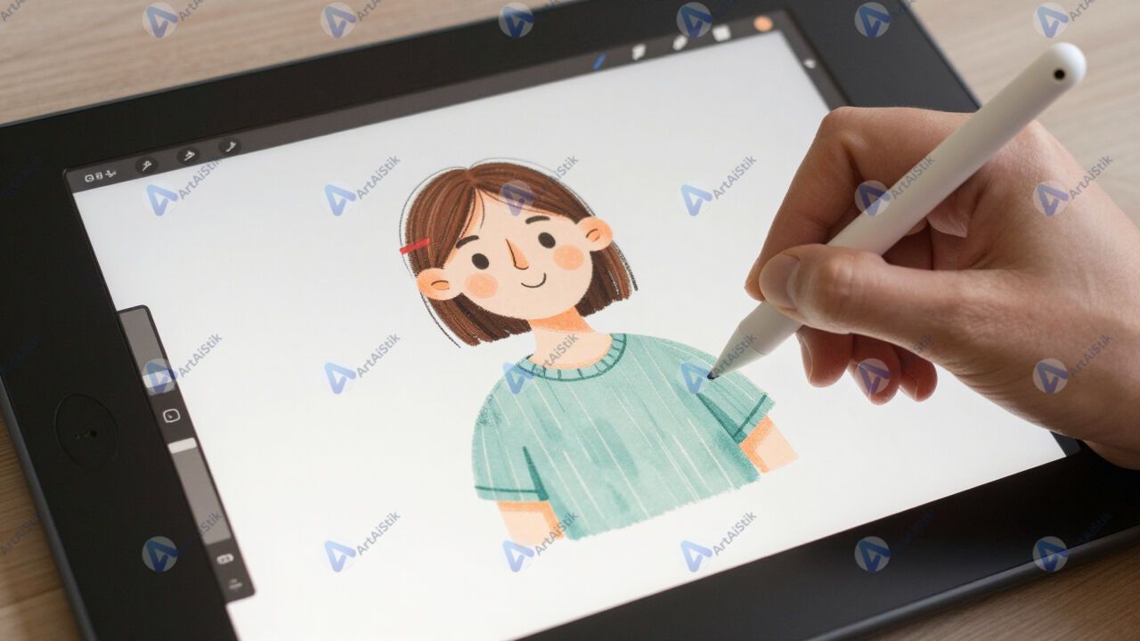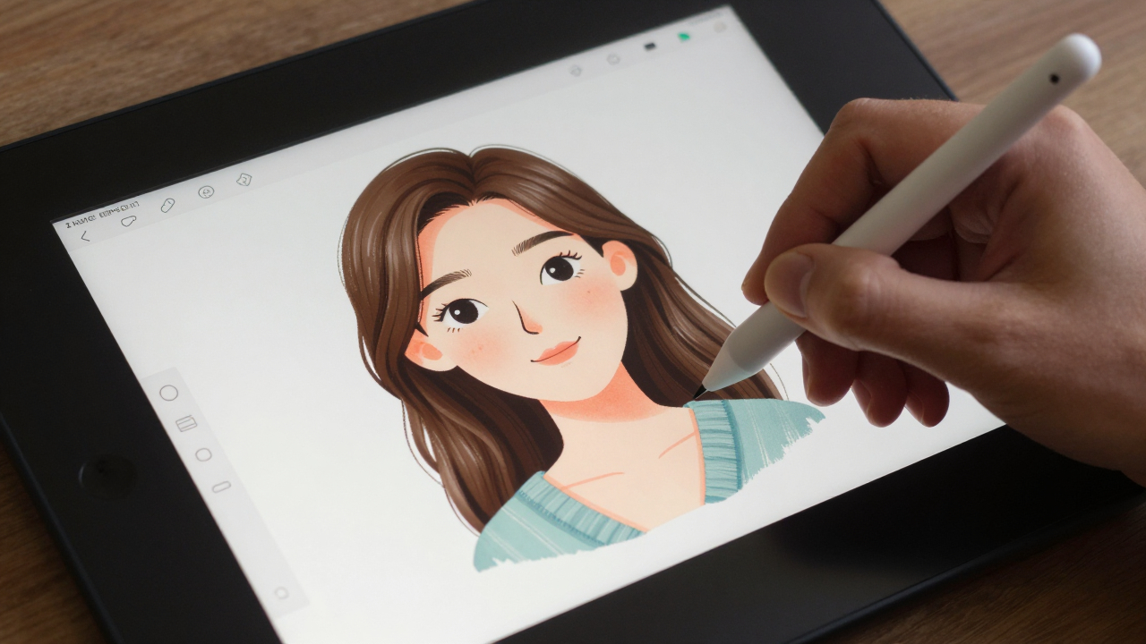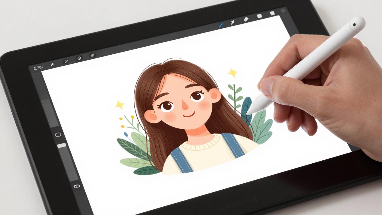 Графический планшет и стилус, цифровая иллюстрация на экране.