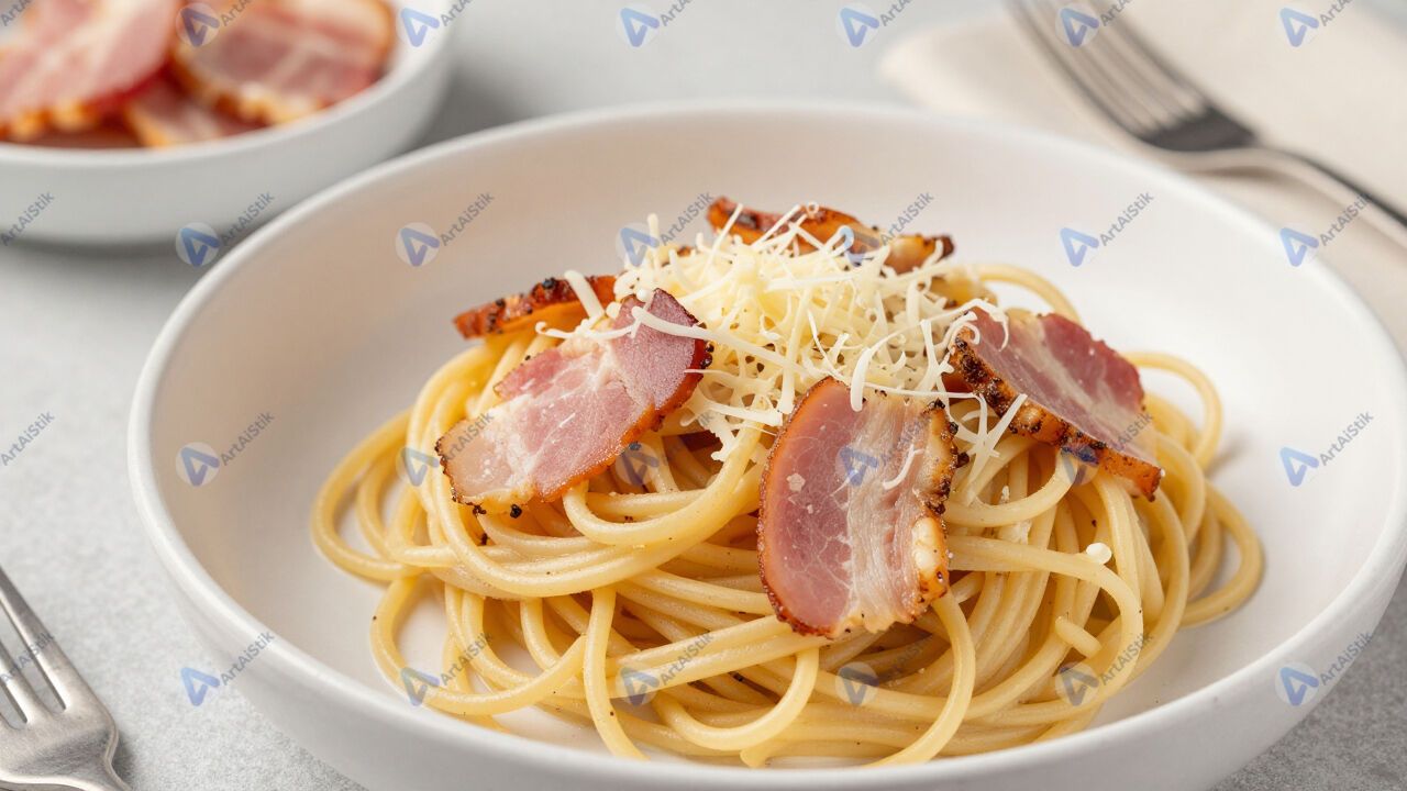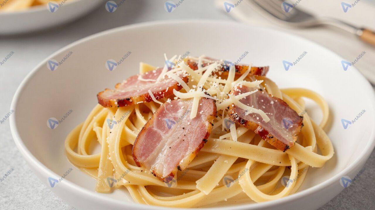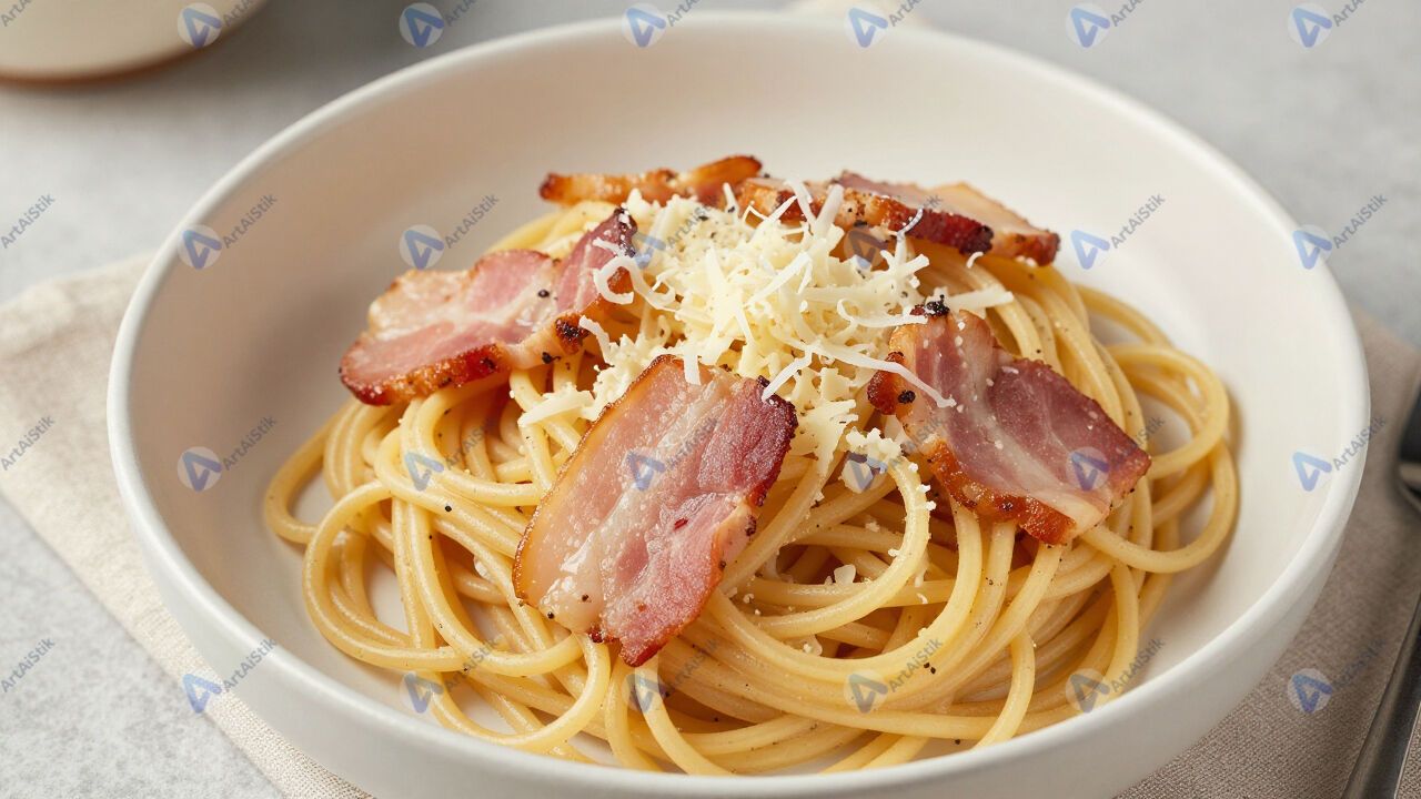 Домашняя паста карбонара с беконом и сыром.