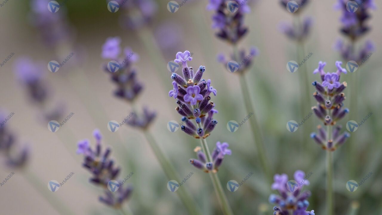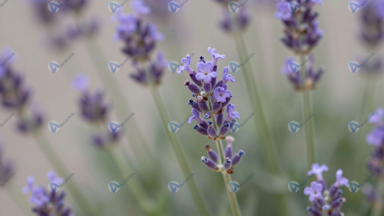 Лаванда крупным планом, фиолетовые соцветия, размытый фон.
