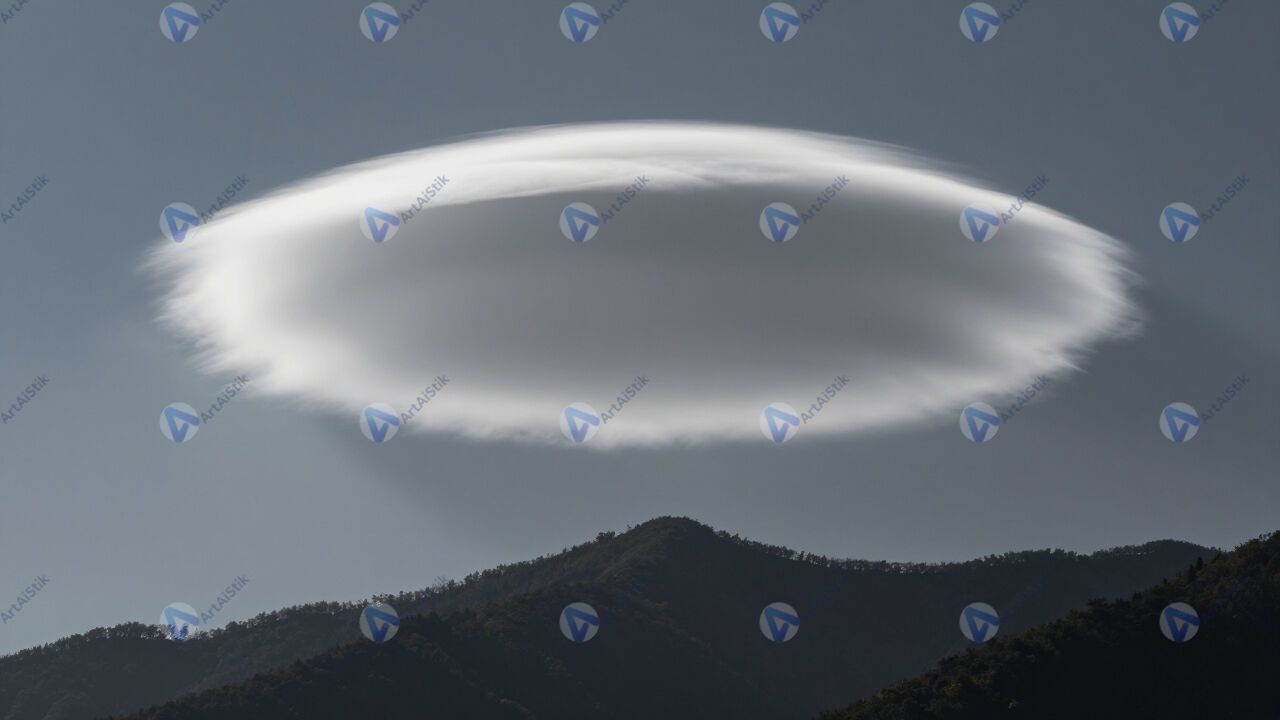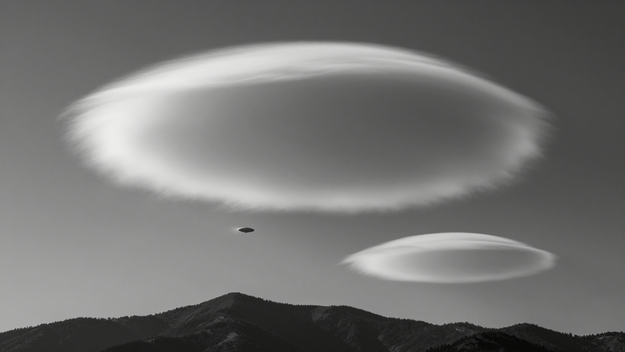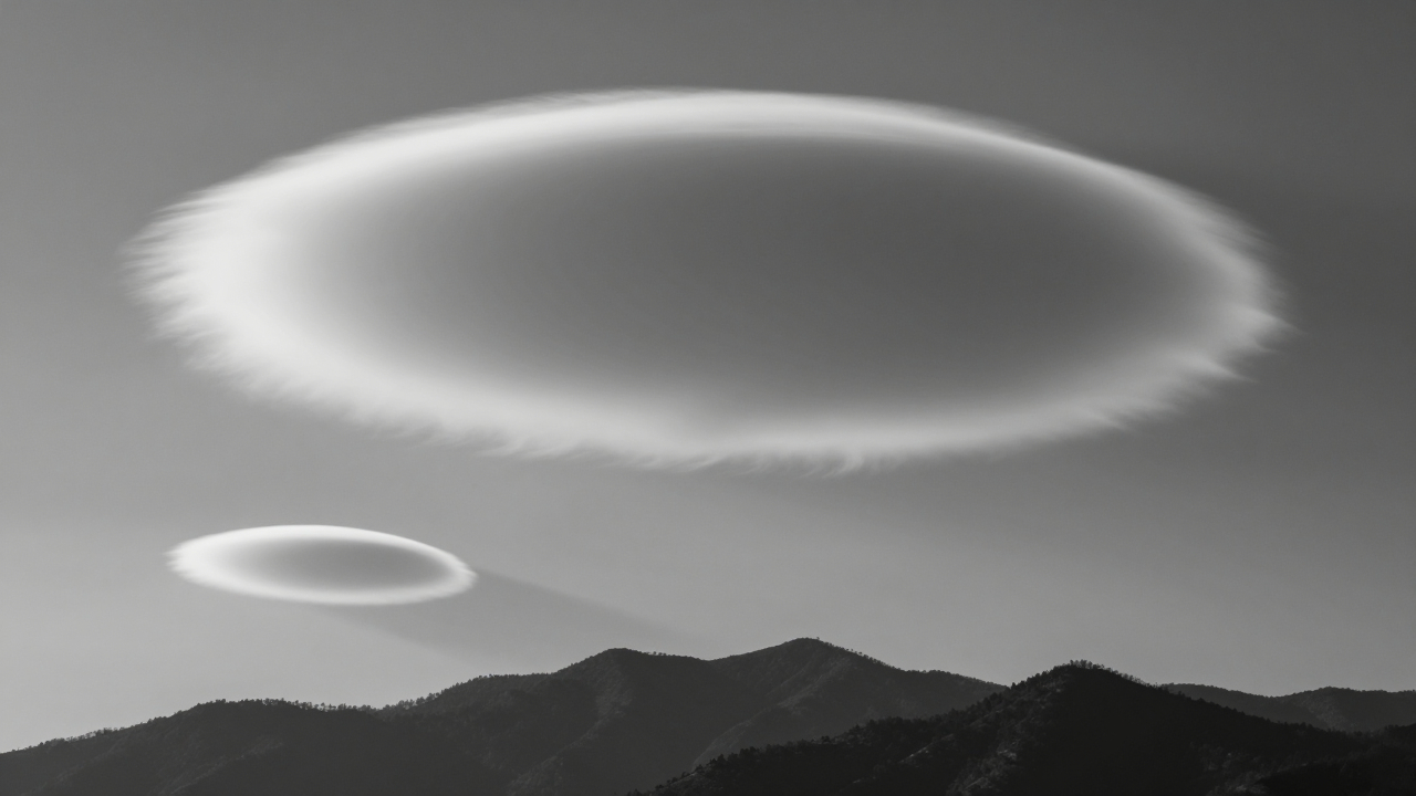 Лентикулярные облака над горой, НЛО-форма.