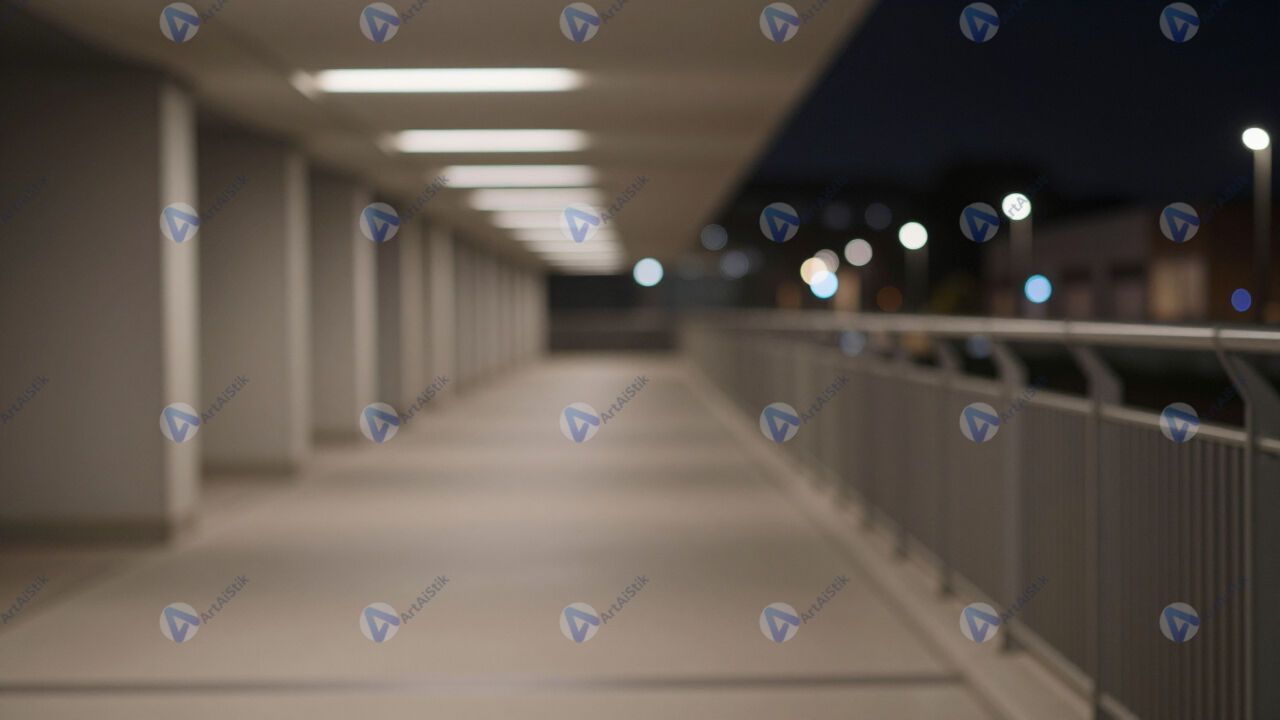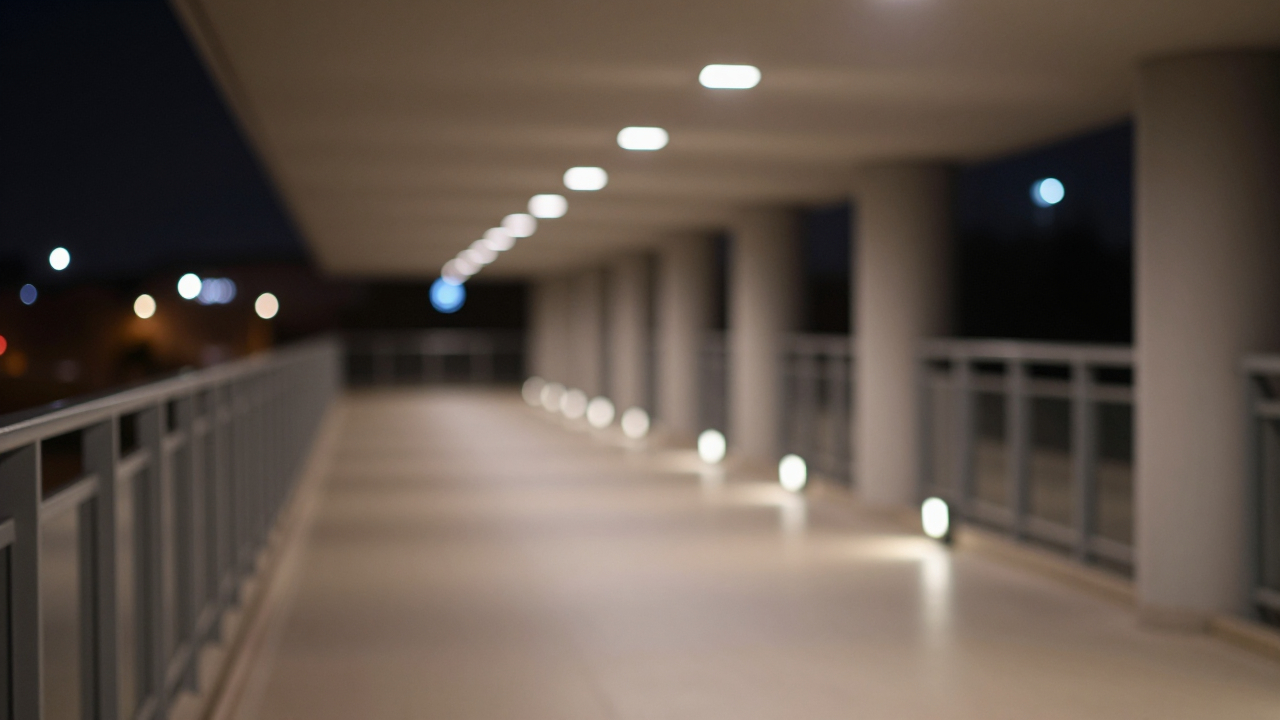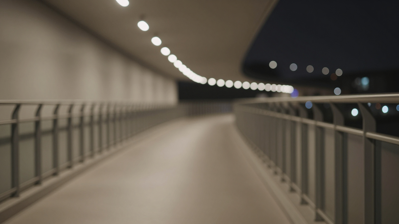 Низко расположенные огни вдоль дорожки, превращённые в ряды bokeh.